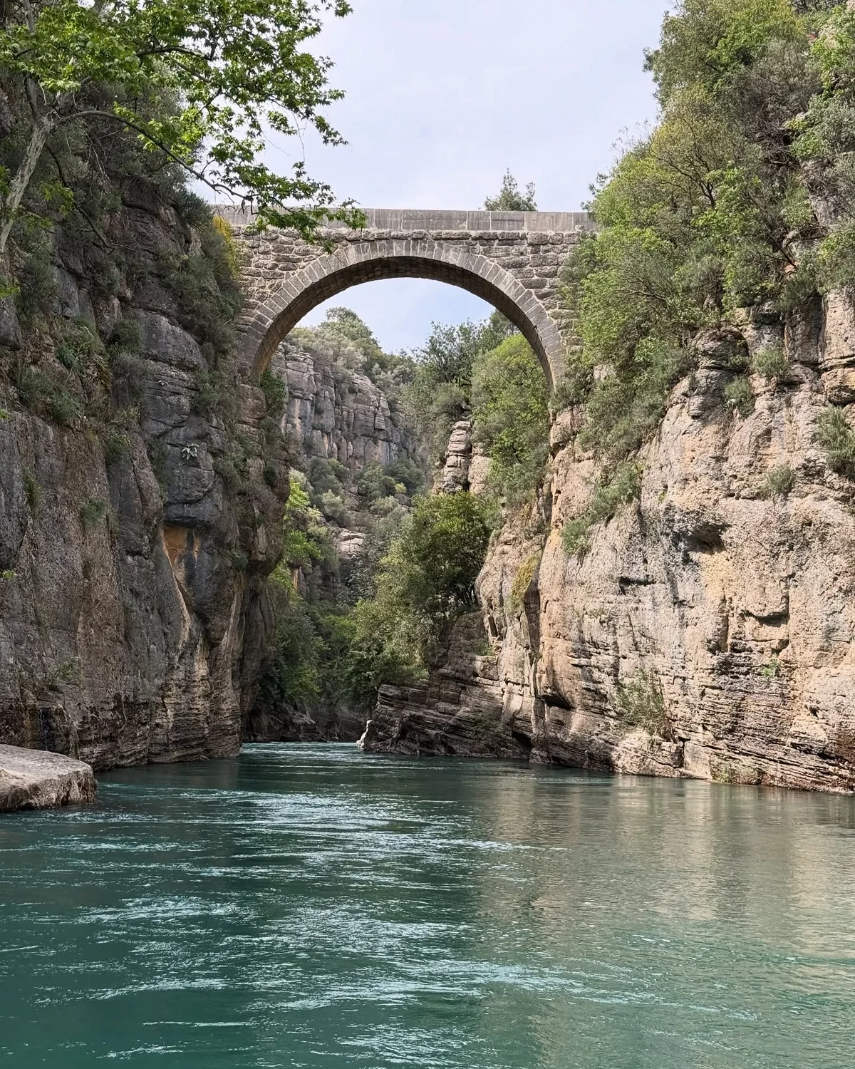 Bu resim, Köprülü Kanyon Milli Parkı'nın tarihi taş köprüleri ve akışkan nehir manzarasıyla doğal güzelliklerini öne çıkarıyor - Türkiye'nin en gözde turistik noktalarından biri!