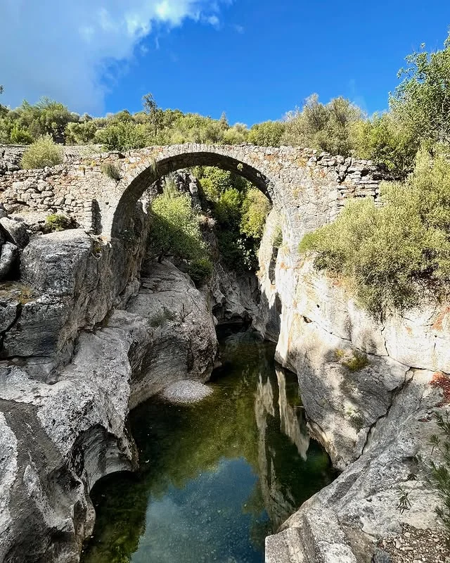 Köprülü Kanyon Milli Parkı'nın bu açıdan çekilmiş görüntüsü, iki yüksek duvar arasında akan turkuaz nehir ve taş kemer köprüsüyle doğanın muhteşem gücünü gözler önüne seriyor. Antalya'nın kalbinde yer alan bu doğa harikası, zengin bitki örtüsü ve eşsiz manzarasıyla keşfedilmeyi bekliyor!
