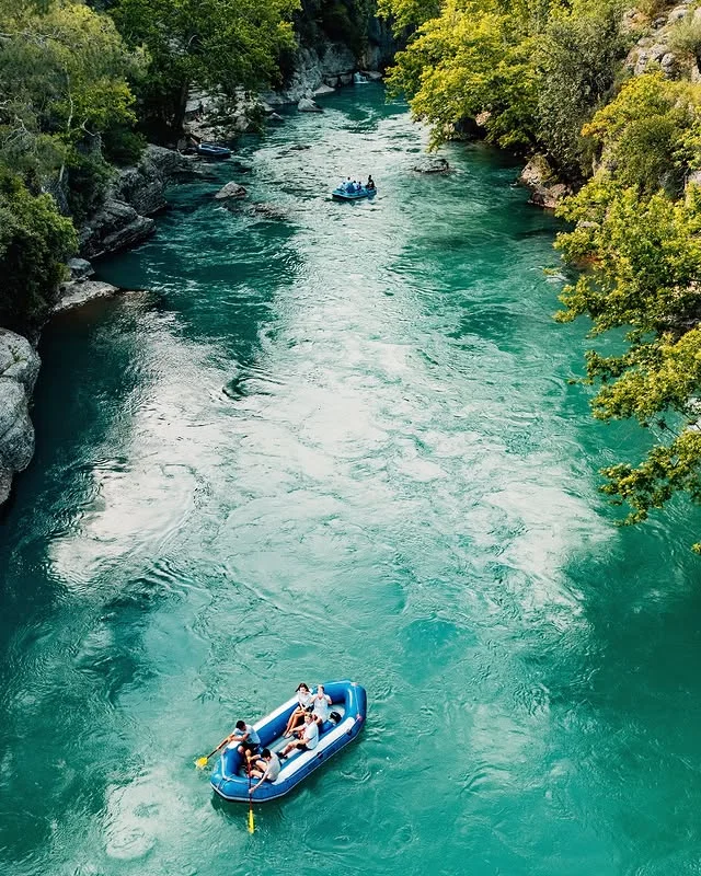Köprülü Kanyon Milli Parkı, doğal güzellikleri ve rafting aktiviteleriyle dikkat çeken bir doğa harikasıdır. Turkuaz nehirde mavi botla rafting yapan insanlar, adrenalinin ve doğanın tadını çıkarıyor. Bu park, Antalya'nın Manavgat ilçesinde yer alarak, doğa ve kültür turizmi için eşsiz bir destinasyon sunuyor.
