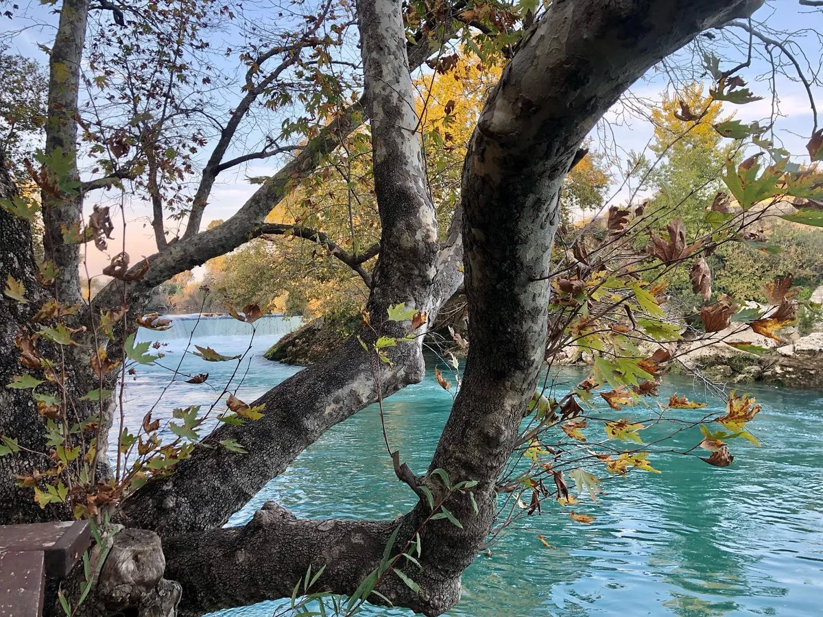 Manavgat Şelalesi'nin bu açıdan çekilmiş fotoğrafı, doğal yapısı ve huzurlu atmosferi ile göz dolduruyor - Antalya'nın saklı cennetlerinden biri! Şelalenin berrak suları etrafındaki ağaçlarla birleşerek eşsiz bir manzara sunuyor.
