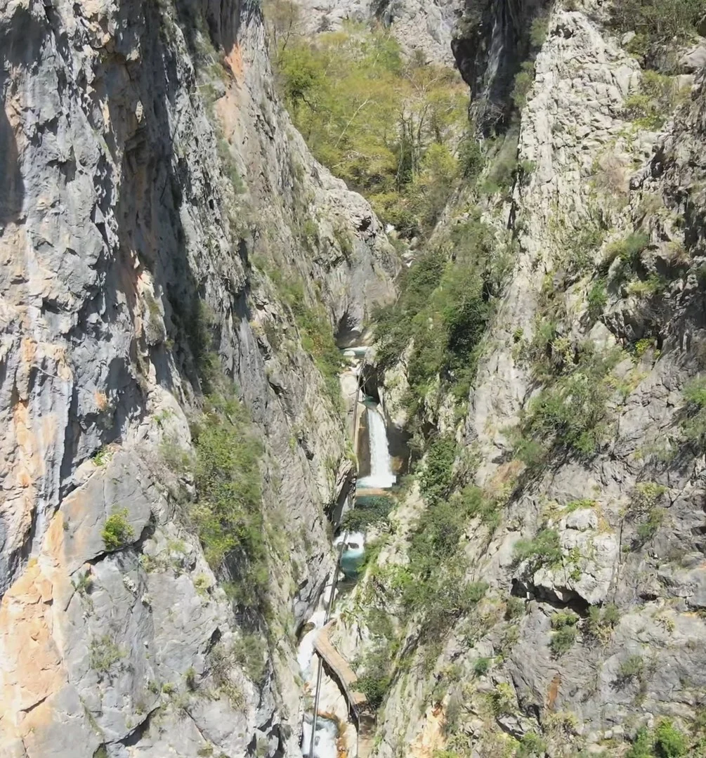 Bu yakın çekim fotoğraf, Sapadere Kanyonu'nun dik yamaçları ve ortasında akan suyun oluşturduğu huzur verici doğal manzarayı sergiliyor. Doğal bitki örtüsü ve etkileyici su akıntılarıyla, kanyon doğaseverlere unutulmaz anlar yaşatıyor!