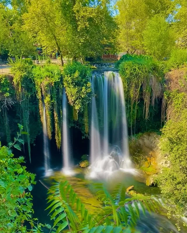 Bu perspektifte, Yukarı Düden Şelalesi'nin yoğun yeşillikler arasından akan berrak suyu ve etrafındaki hafif sis, ziyaretçilere huzur dolu bir atmosfer sunuyor. Doğal güzellikleriyle Antalya'nın saklı cennetlerinden biri!