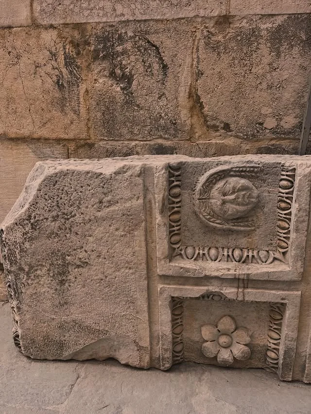 Aspendos Antik Kenti'nin Roma dönemine ait taş işçiliği, bu yakın çekimde kabartmaların detaylı işçiliğini gözler önüne seriyor. Antalya'nın tarihi zenginliklerinden biri olan bu alan, Pamfilya'nın kültürel mirasını yansıtıyor.