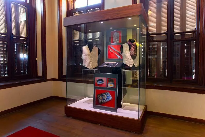 Bu resimde, Alanya Atatürk Evi Müzesi'nin sergi alanı, şık vitrinler içinde sergilenen beyaz yelekler ve kravatlarla tarihi bir hazine sunuyor. Alanya'nın kültürel zenginliğini keşfetmek isteyenler için kaçırılmayacak bir durak!