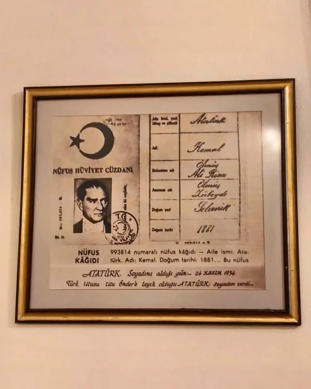 Atatürk Evi Müzesi, Türkiye'nin kültürel mirasını çerçevelenmiş tarihi belgelerle ziyaretçilerine sunuyor! Atatürk'ün bilgilerini içeren nüfus cüzdanı, Türk bayrağı simgesiyle birlikte dikkat çekiyor. Antalya'nın Muratpaşa ilçesinde yer alan bu müze, modernleşme hareketlerinin izlerini taşıyor.