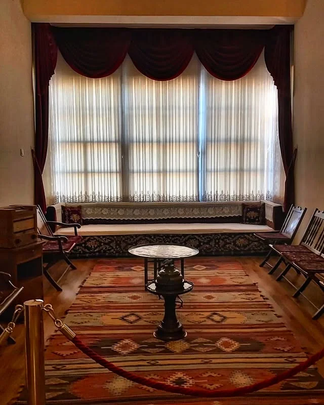 Antalya Atatürk Evi Müzesi, Türkiye'nin kültürel mirasını yansıtan tarihi bir yapıdır - büyük pencereler ve yuvarlak masa ile donatılmış bu oturma odası, sıcak ve samimi bir atmosfer sunuyor!