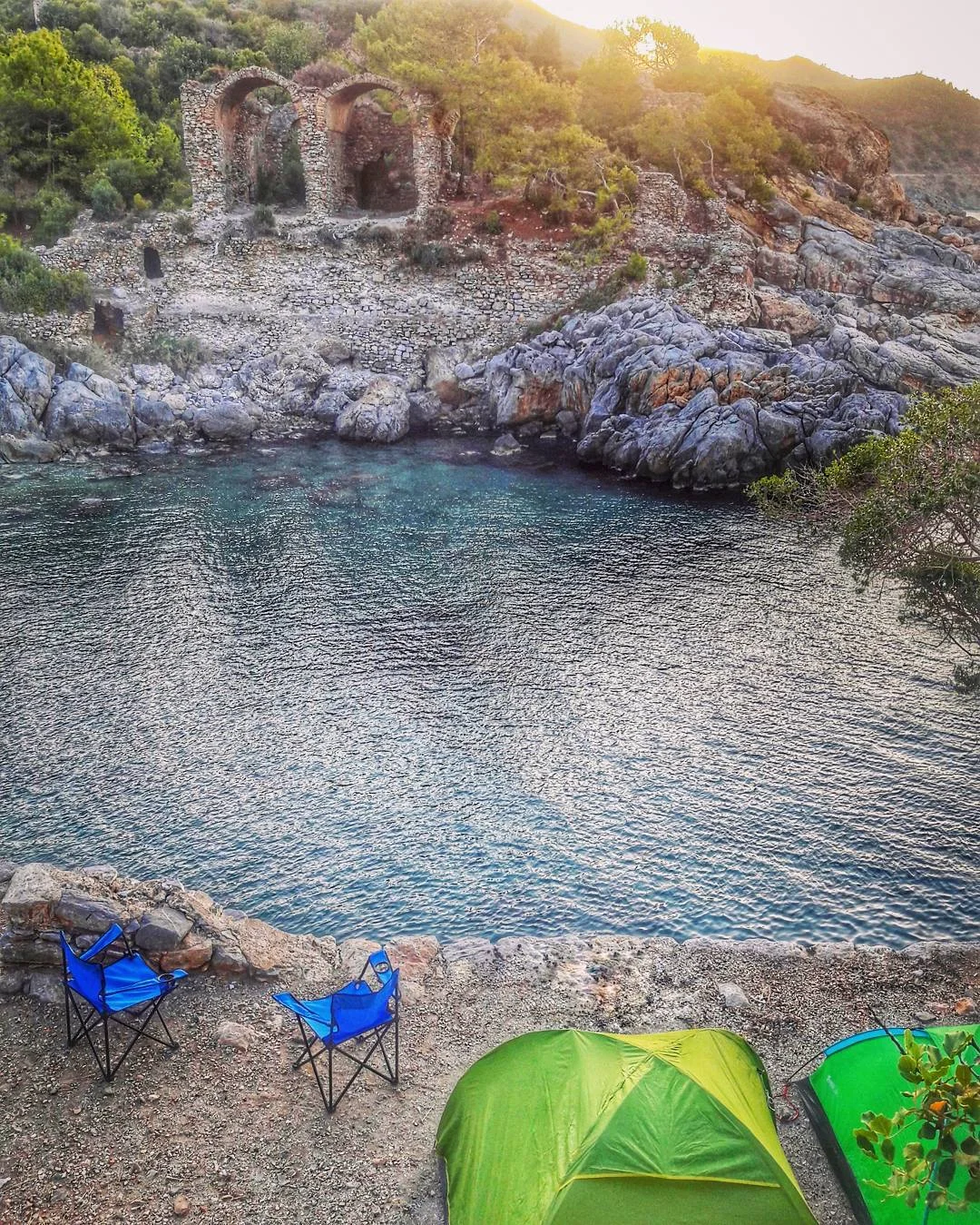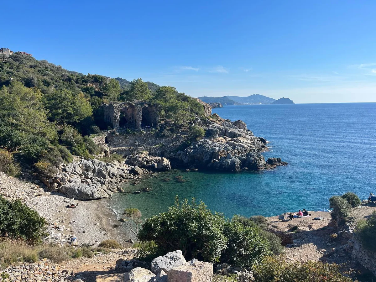 Antik kentin güneyinde denize girilebilecek bir kumsal bulunuyor. Antik liman kalıntılarının bulunduğu küçük koyda yüzmek, tarihin içinde serinlemenin benzersiz bir yolu. Akropol, hamam, kilise ve nekropol kalıntılarını gezerken, kentin sırtlarından izleyeceğiniz manzara sizi büyüleyecek. Fotoğraf meraklılarına tavsiyem: gün batımı saatlerini kaçırmayın!