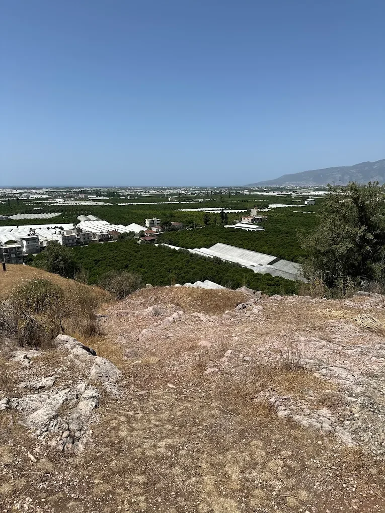 Korydalla Antik Kenti'nin bu farklı açısı, doğal güzellikleri ve tarım alanlarıyla birlikte tarihi dokusunu harmanlayan etkileyici bir perspektif sunuyor. Antalya'nın kültürel zenginliğini yansıtan bu alan, tarih ve doğanın iç içe geçtiği bir yer.