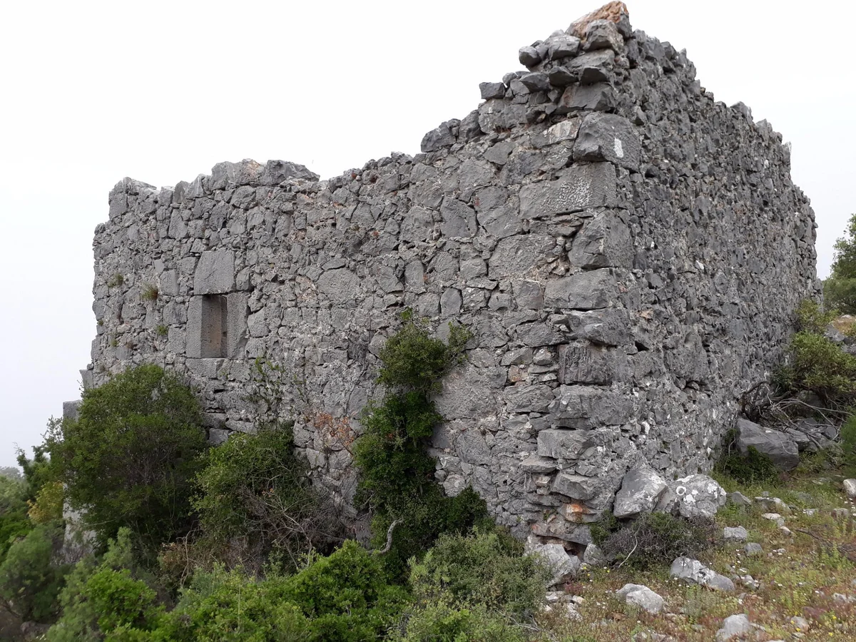 Laertes Antik Kenti'nin farklı açılardan çekilmiş bu görüntüsü, tarihi kalıntıların detaylı yapısını gözler önüne seriyor - taş duvarlar ve bitkilerle dolu bu harabe, geçmişin izlerini günümüze taşıyor!