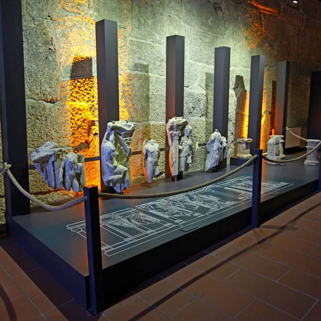 Açık hava alanında agora-plakoma, hamam, kilise, sinagog, surlar, su kemerleri, liman, çarşı, gözetleme kuleleri ve onurlandırma anıtları gibi yapı kalıntıları, antik kent yaşamının bütüncül bir resmini çiziyor. Müzenin dördüncü kısmında liman kenti için önemli bir gelir kaynağı olan zeytinyağı üretimi ile ilgili eserler ve mutfak kültürüne ilişkin buluntular, gündelik yaşamın izlerini takip etme imkanı sunuyor.