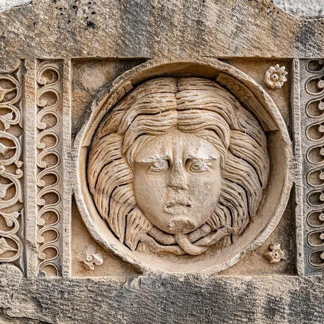 Likya Uygarlıkları Müzesi, antik dönemin sanatsal ifadesini yansıtan önemli eserleriyle kültürel bir hazine sunmaktadır. Yakın çekimdeki bu resim, detaylı yüz tasviri ve taş süslemelerin inceliklerini gözler önüne seriyor. Demre'deki bu müze, ziyaretçilerine tarihsel bir yolculuk vaat ediyor!