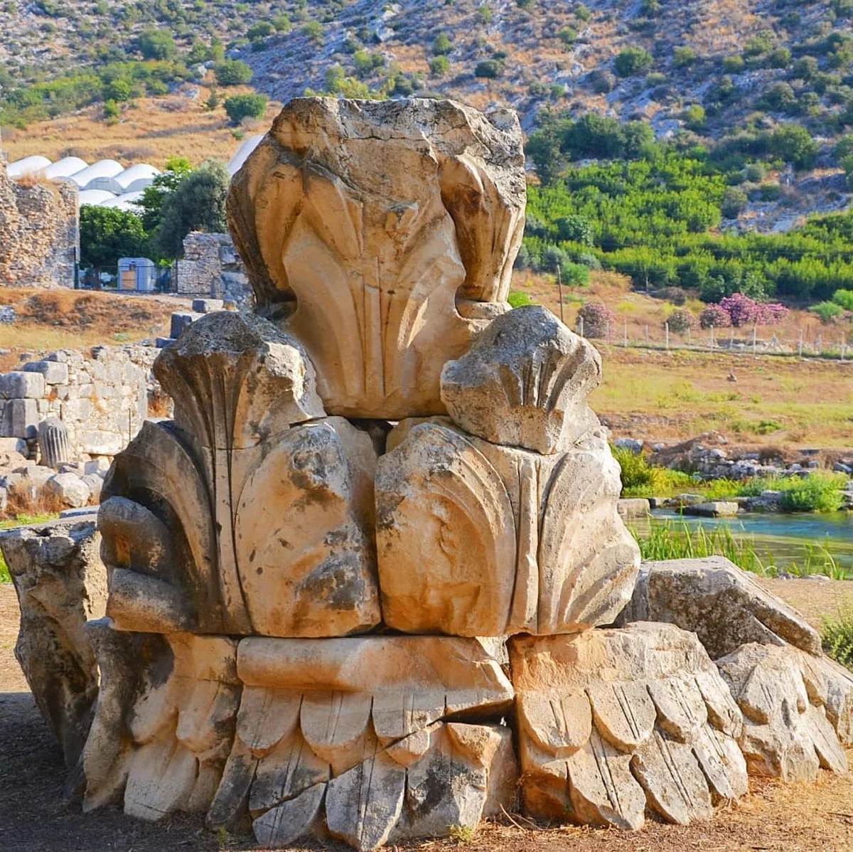 Antik dönem mimarisinin izlerini taşıyan Limyra Antik Kenti, bu açıdan detaylı süslemelere sahip büyük taş sütun kalıntısıyla büyülüyor! Antalya'nın kültür turizmi için önemli bir destinasyon.