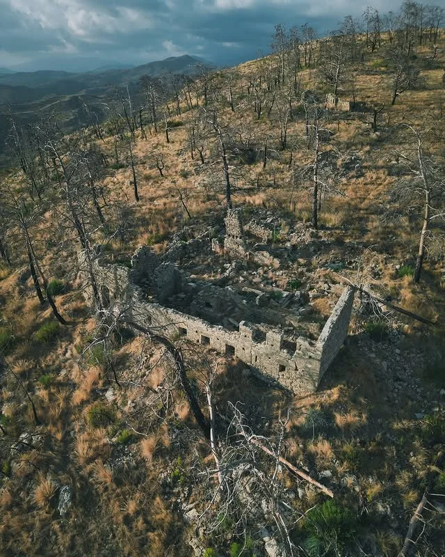 Yüksekten çekilmiş bu manzara, Lyrbe Antik Kenti'nin taş kalıntıları ve yanmış ağaçlarla dolu büyüleyici doğasını keşfetmeye davet ediyor. Manavgat'ta yer alan bu ören yeri, tarihi ve doğal güzellikleri bir arada sunuyor.