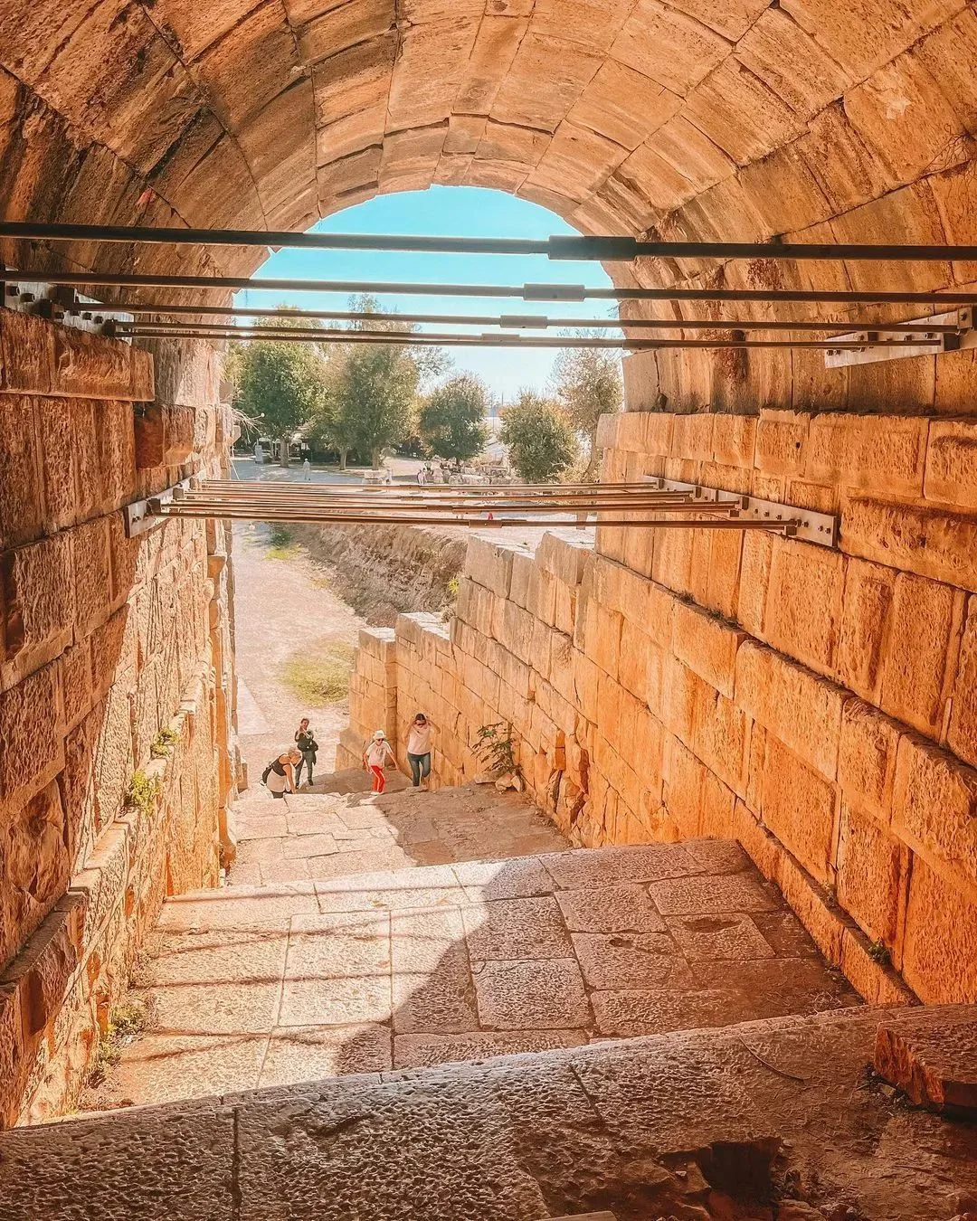 Myra Antik Kenti'nde, taş basamaklar ve detaylı taş bloklarla çevrili eski yapı kalıntıları, Likya'nın kültürel zenginliklerini gözler önüne seriyor. Antalya'nın bu önemli arkeolojik alanı, tarihseverler için bir hazine niteliğinde.