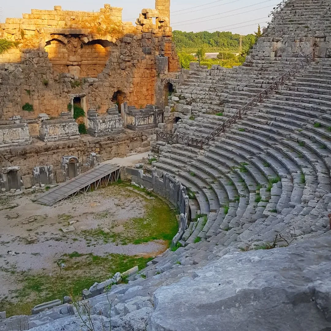 Perge Antik Kenti'nin amfi tiyatrosu, tarihi mimarisi ve doğal çevresiyle göz alıcı - üstten görünümüyle taş oturma sıraları arasında geçmişin seslerini duy! Antalya'nın bu kültürel mirası, ziyaretçilerine zamanda yolculuk fırsatı sunuyor.
