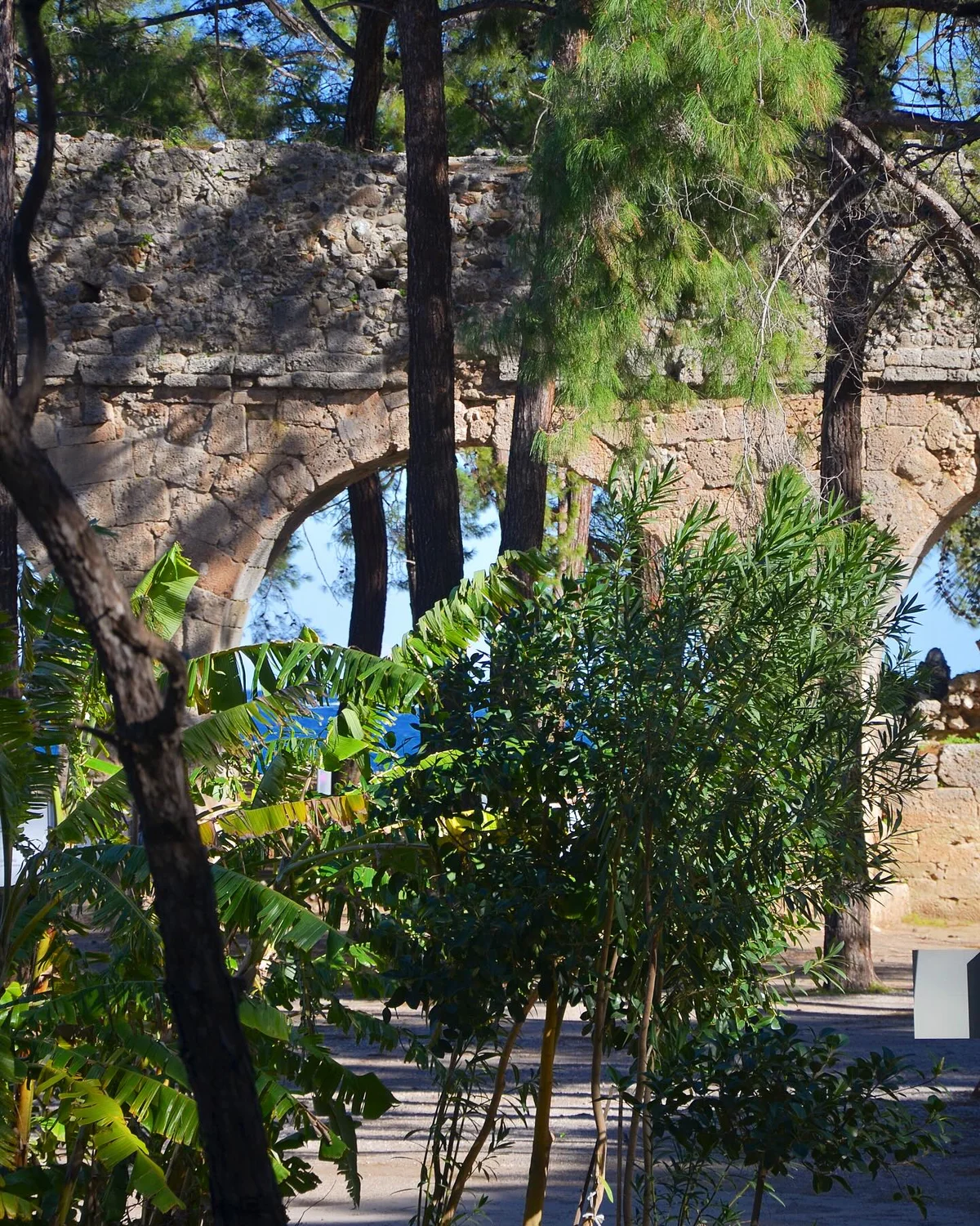 Yüksek ağaçlar ve antik kemer yapısı bu açıdan, mavi gökyüzü ve yoğun yeşillikle birleşerek Phaselis Antik Kenti'ni eşsiz kılıyor! Doğa ve tarihin iç içe geçtiği bu turistik alan, Antalya'nın kültürel mirasının en güzel örneklerinden biri. Phaselis, ziyaretçilerine tarihi yapılarıyla doğanın kucaklaştığı bir atmosfer sunuyor.