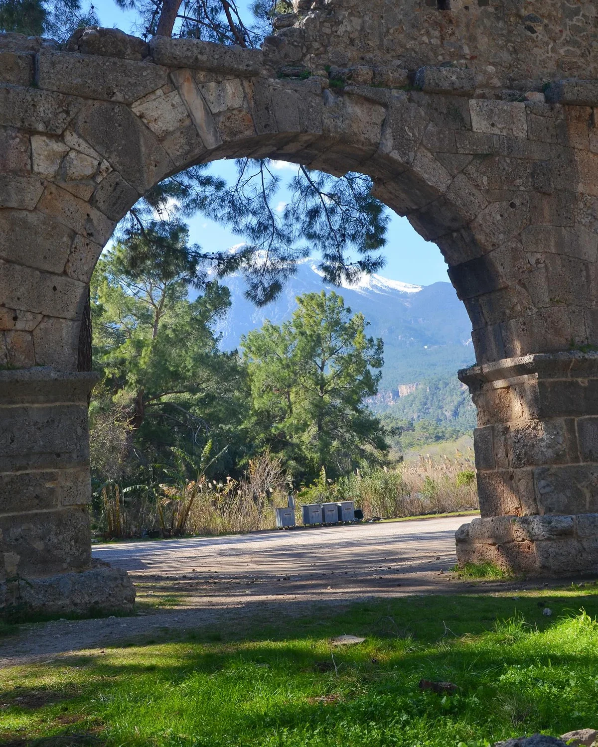 Phaselis Antik Kenti, karla kaplı dağlar ve yeşil alanların önünde yükselen kısmen yıkılmış taş kemerle benzersiz bir destinasyon - doğa ve tarihin iç içe geçtiği bu manzara, ziyaretçilerine unutulmaz anlar yaşatıyor! Antalya'daki bu antik kent, tarih ve doğa severleri bir araya getiriyor.