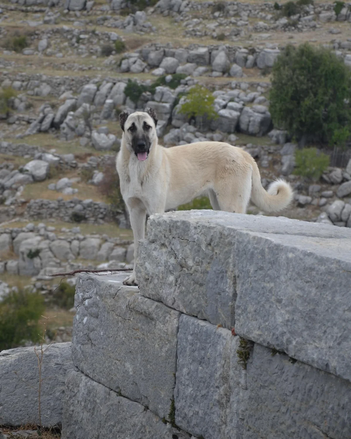 Selge Antik Kenti'nde, taş duvarın üstünde duran mutlu köpek, tarihi kalıntılarla çevrili doğal güzelliklerin keyfini çıkarıyor! Bu açı, bölgenin zengin florası ve faunasıyla birlikte antik atmosferi hissettiriyor. Manavgat'ta yer alan bu doğal-kültürel zenginlik, ziyaretçilerine eşsiz anılar vaat ediyor.