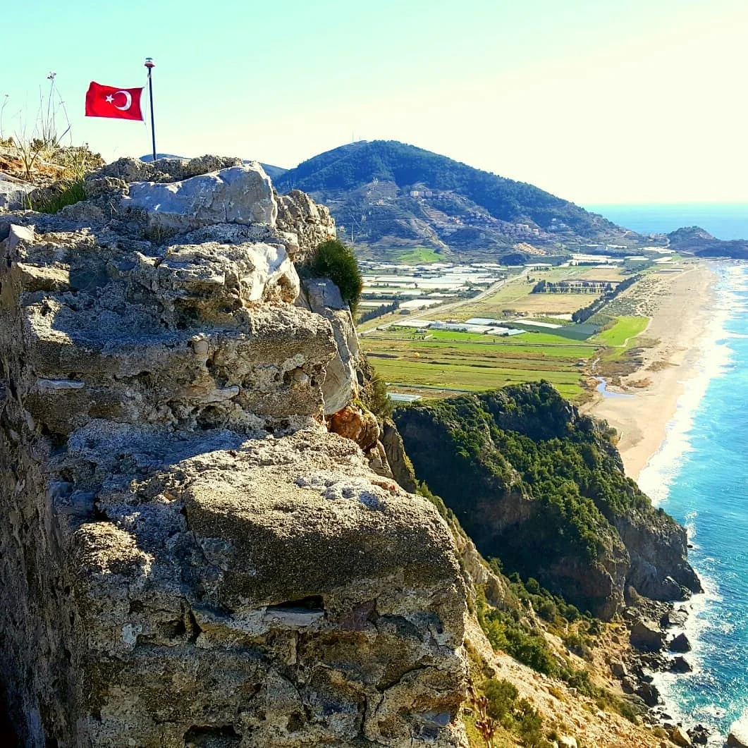 Selinus Antik Kenti, denize bakan tarihi kalıntıları ve Türk bayrağı ile ziyaretçilerini etkiliyor - yeşil tarım alanları, bölgenin zengin doğasını gözler önüne seriyor! Gazipaşa'nın bu tarihi noktası, kültürel mirasın önemli bir parçası.