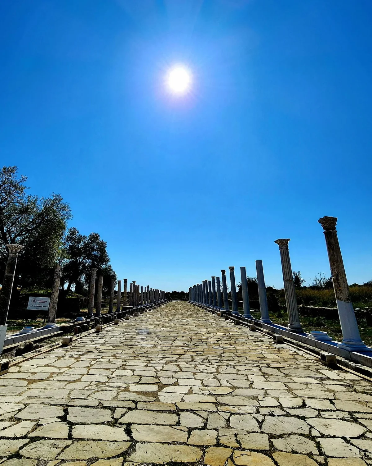 Ziyaretinize kuzeydoğudaki "Büyük Kapı"dan başlamanızı tavsiye ederim. Buradan başlayan ana cadde, tiyatro önünde kavis yaparak tapınaklar yakınındaki büyük meydanla sona eriyor. Bu sütunlu caddelerde yürürken, iki tarafınızdaki Korint başlıklı sütunlu portikleri ve gerisindeki antik dükkânları hayal etmeye çalışın. Rehberlik yaptığım gruplara, bu caddede antik dönem ticaret hayatının nasıl işlediğini anlatırken heyecanlanırım.