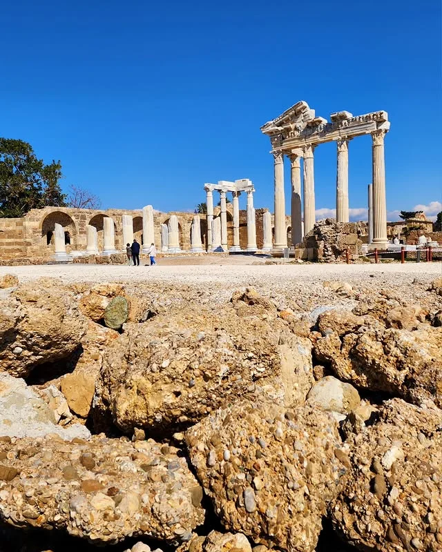 Apollon Tapınağı, Side Antik Kenti'nde antik liman girişinde yer alır ve Athena Tapınağı ile yan yanadır. Özellikle gün batımında sunduğu manzara ile dikkat çeker; bu anı yaşamak için ideal bir noktadır. Tapınaktaki Medusa kabartmaları da tarihi dokuyu keşfetmek isteyenler için ilgi çekicidir.