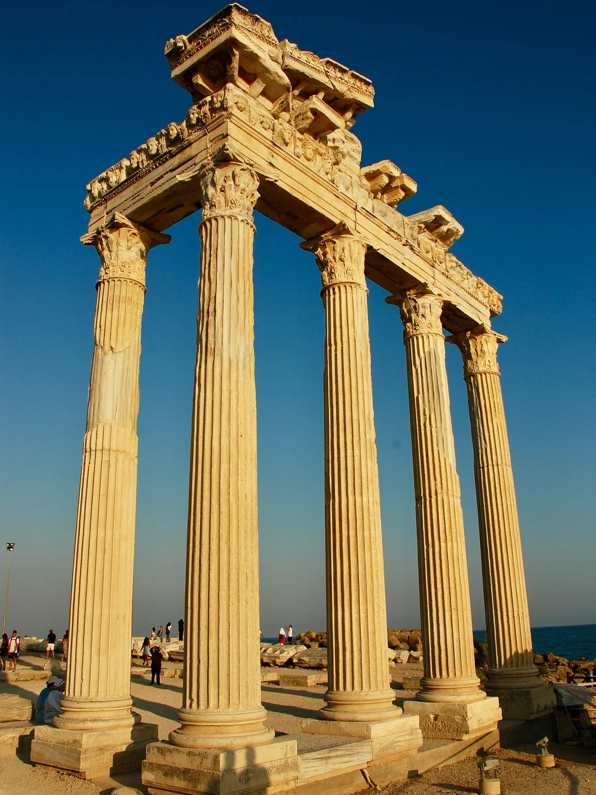Side Antik Kenti'nin Roma dönemine ait sütunları, farklı bir açıdan bakıldığında tarihsel derinliği ve mimari zenginliği gözler önüne seriyor! Bu ören yeri, Antalya'nın kültürel turizminde önemli bir yere sahip.