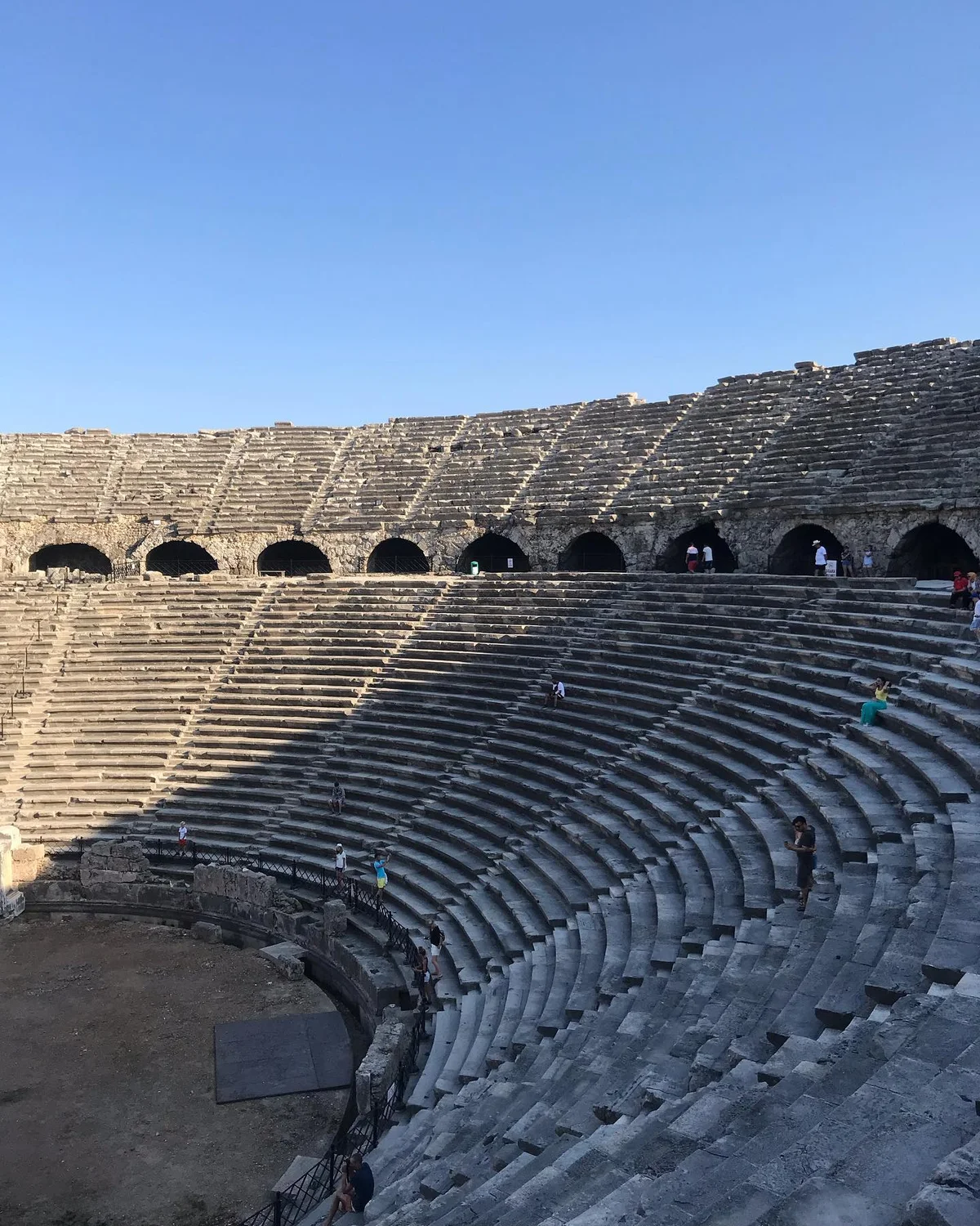 Roma dönemine ait etkileyici tiyatro yapısı, bu açıdan bakıldığında iç mekanındaki oturma alanları ve ziyaretçileriyle Side Antik Kenti'nin kültürel mirasını canlandırıyor. Antalya'nın bu önemli ören yeri, tarih severler için bir cennet!