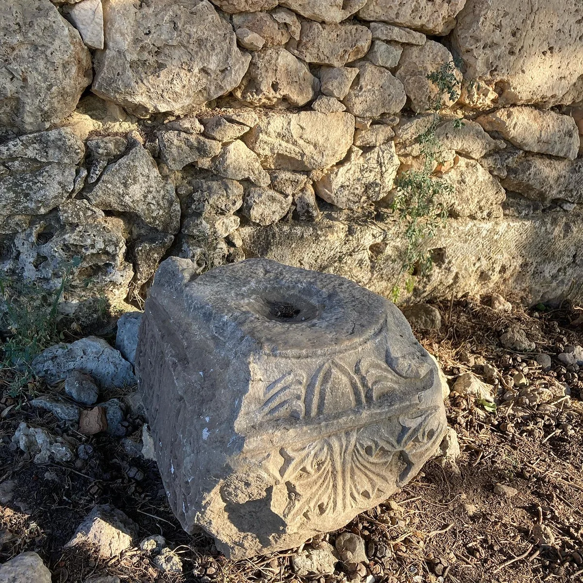Sillyon Antik Kenti'nde bitki motifleriyle zenginleştirilmiş taş bloklar, bu yakın çekimde tarihi ve sanatsal değeri ön plana çıkarıyor. Taş duvarın arka planı, geçmişin estetik anlayışını bugüne taşıyor - Anadolu Medeniyetleri'nin izlerini Serik'te keşfedin!