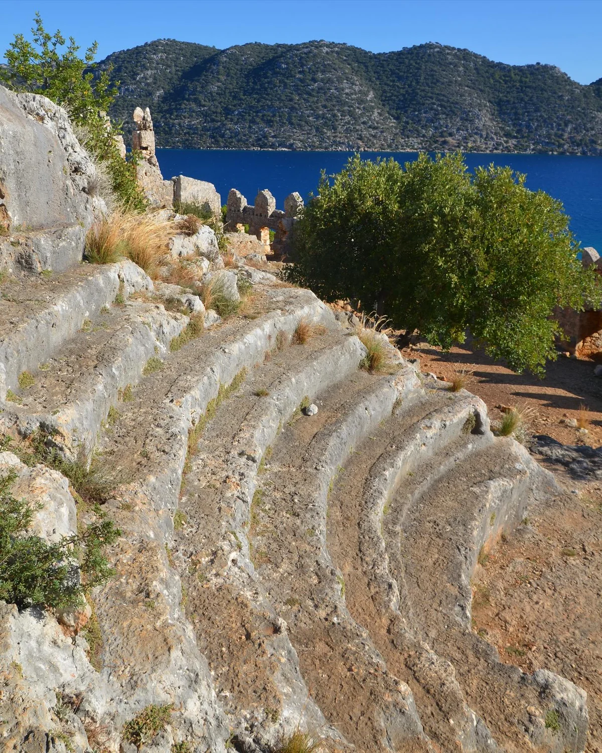 Simena Antik Kenti, doğal manzara ve antik kalıntılarıyla benzersiz bir turistik cazibe merkezi! Yeşil bitkiler ve mavi denizle çevrili bu alan, tarih ve doğanın buluşma noktası olarak öne çıkıyor - Kaş ve Demre arasında saklı bir cennet.