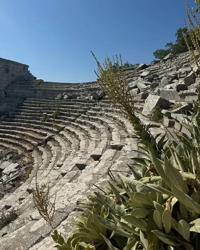 Yakın çekimle öne çıkan Termessos Antik Kenti'nin tiyatrosu, antik mimarinin etkileyici bir örneği! Taş merdivenler ve çevresindeki yeşillikler, bu tarihi yapının kültürel önemini pekiştiriyor.