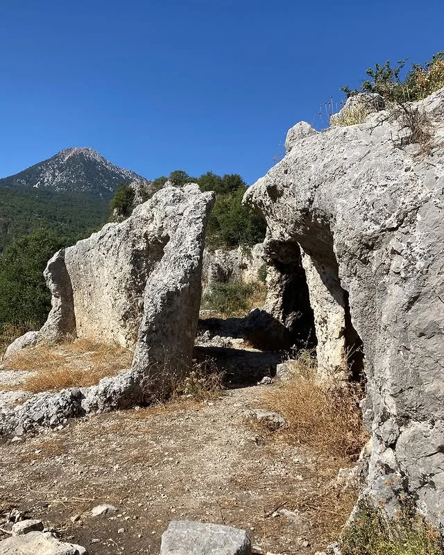 Trebenna Antik Kenti'nin tarihi zenginliği ve etkileyici mimarisi, bu geniş açıdan göz kamaştırıyor! Dağlık alanda konumlanan bu antik yapı, yemyeşil dağlar ve mavi gökyüzü ile çevrili. Antalya'nın kültür turizmi açısından önemli bir noktası!
