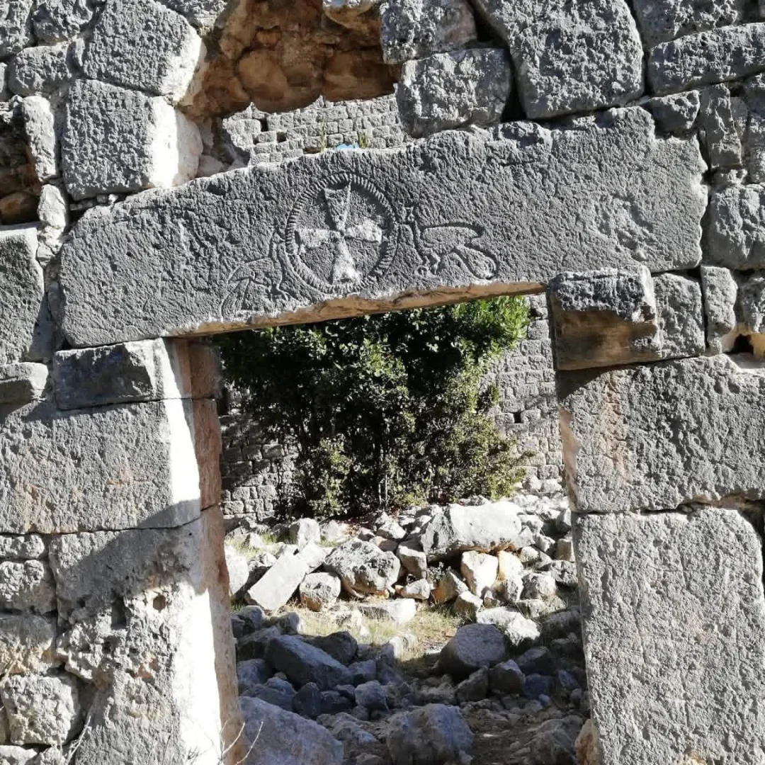 İmirzeli Hermes Öreni, antik dönem mimarisinin izlerini taşıyan önemli bir tarihi yapıdır. Yakın çekimle görülen haç motifli kapı, Bizans ve Osmanlı sanatının etkilerini yansıtıyor! Mersin, Erdemli yakınlarındaki bu alan, kültürel mirasın bir parçası.