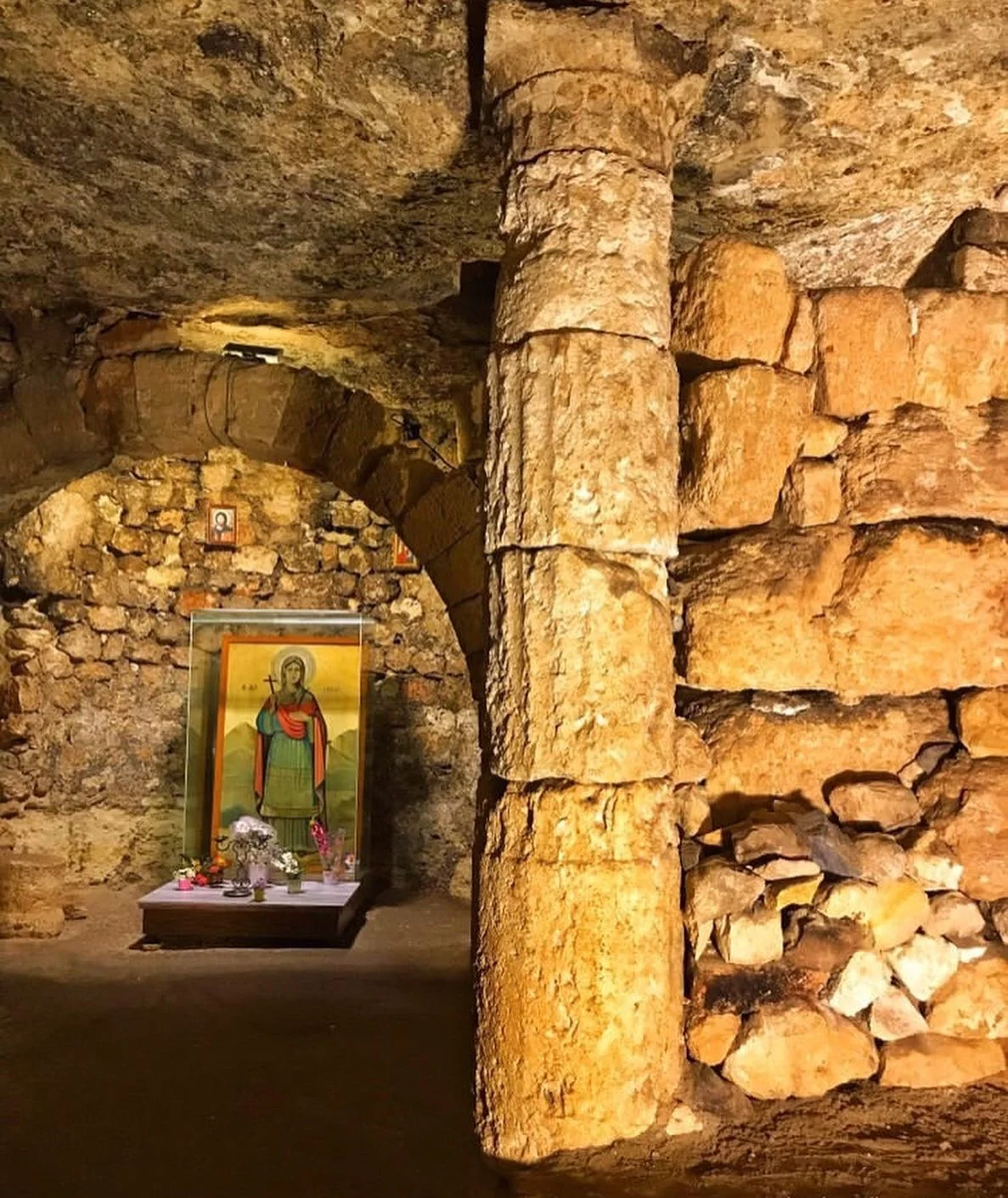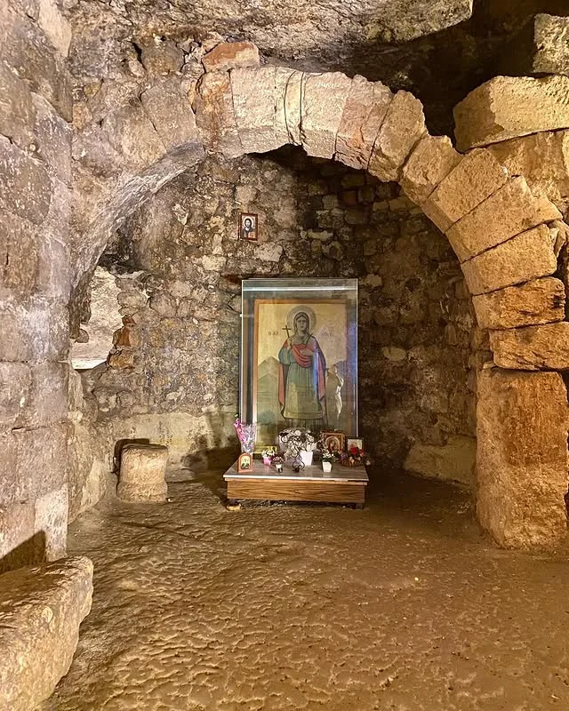 Bu resimde, Aya Thekla Manastırı'nın mahzeni, taş işçiliği ve ahşap altar ile dikkat çekiyor! İkon ve mumların mistik atmosferi, burayı bir ibadet alanından çok daha fazlası yapıyor.