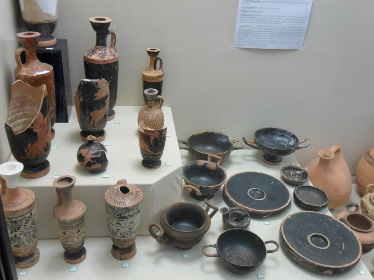 Silifke Müzesi'nin antik seramik koleksiyonu, bu yakın çekimde detaylıca görülebiliyor - Türkiye'nin kültürel mirasını sergileyen bu eserler, tarih boyunca sanatın gelişimine ışık tutuyor!