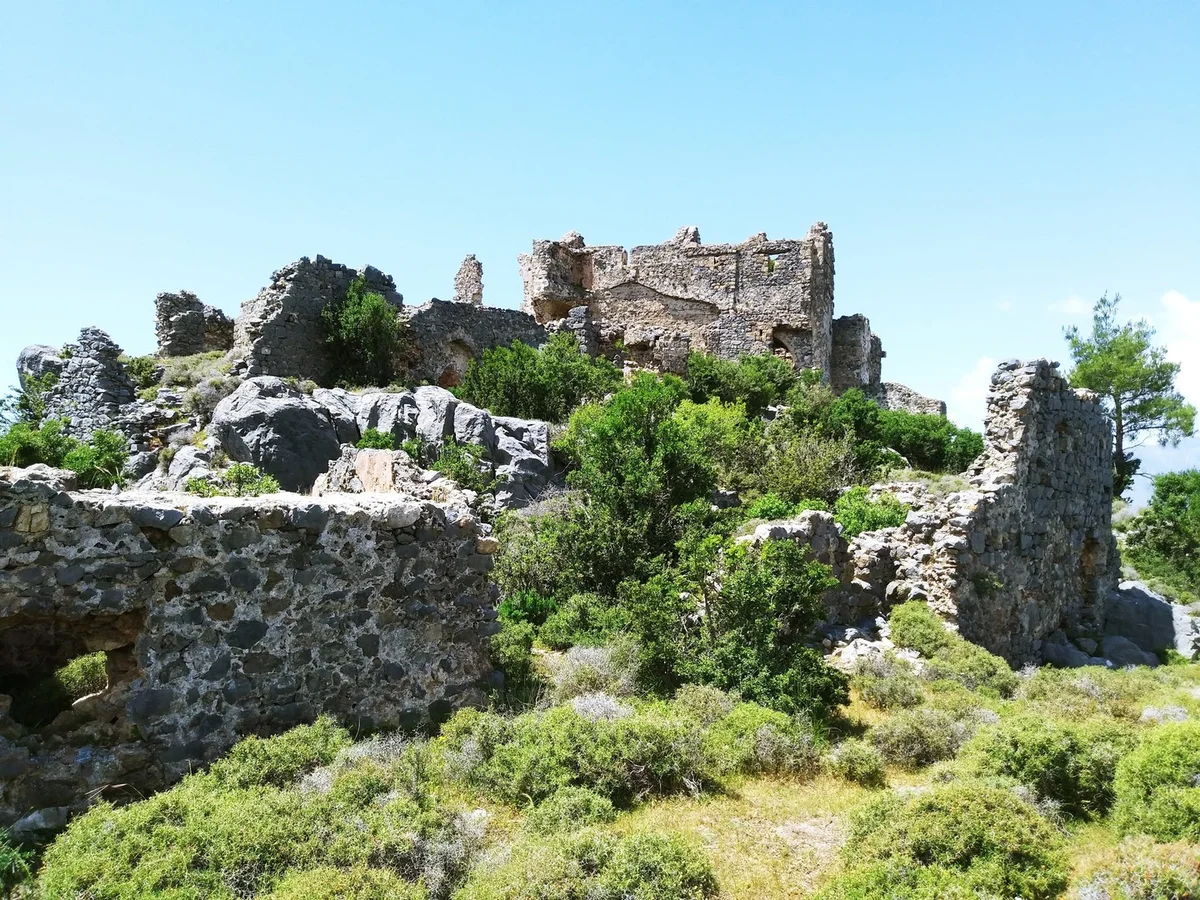 Softa Kalesi'nin bu açıdan çekilmiş görüntüsü, stratejik savunma yapısının doğayla iç içe geçmiş halini yansıtıyor - yemyeşil bitki örtüsüyle kaplı tepe, ziyaretçilere eşsiz bir deneyim sunuyor! D.400 karayolunun hemen kuzeyinde yer alan kale, tarihi keşifler için ideal.