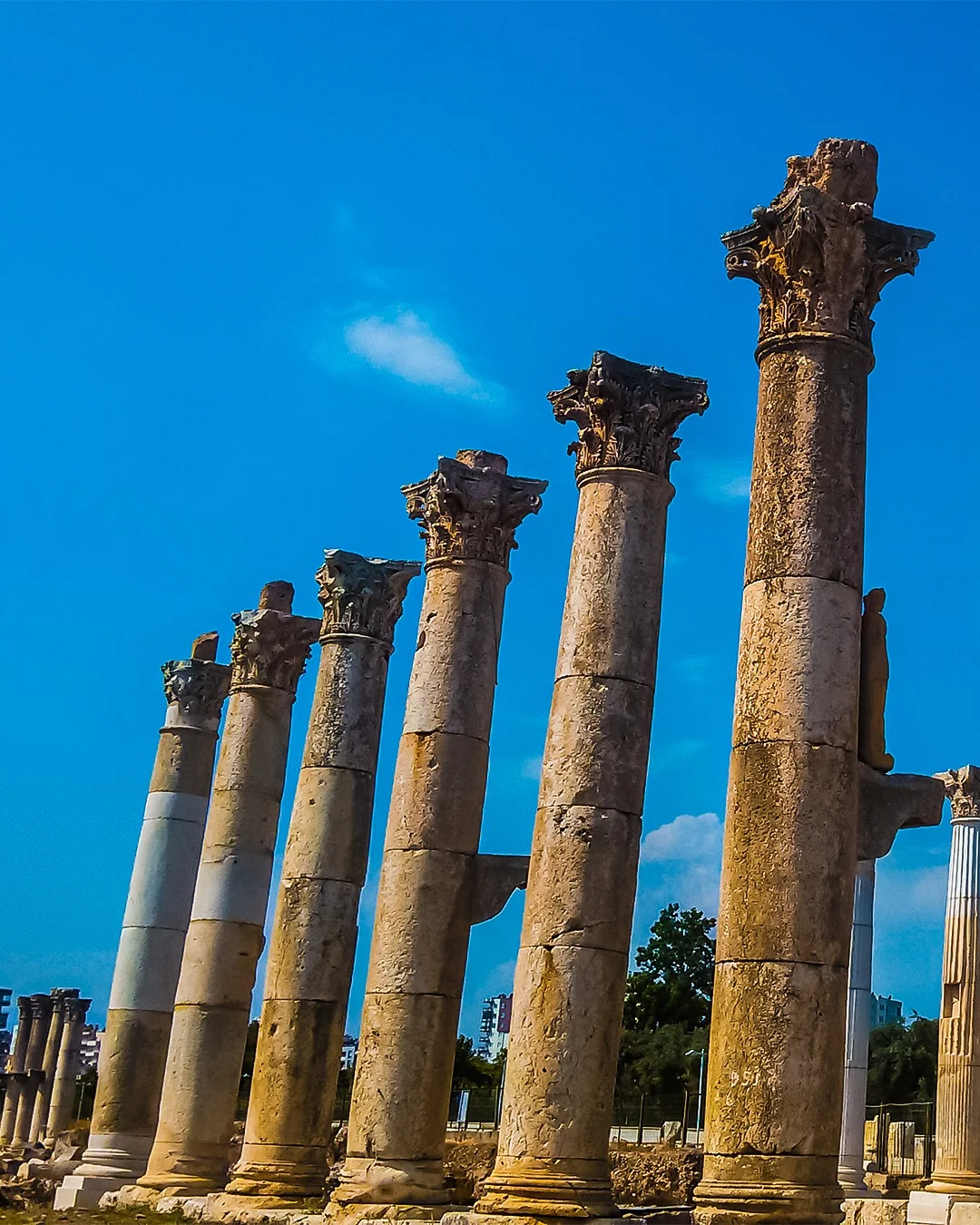 Roma döneminde yeniden canlanan kent, liman ve şehir surlarının Hadrianus (MS 130) ve Antoninus Pius dönemlerinde onarılması ile imparatorluk genelindeki kamu yapıları yenileme politikasının parçası haline gelmiştir. 450 metre uzunluğunda, 14,5 metre genişliğindeki Sütunlu Cadde ve 33 Korinth düzeninde sütunun varlığı, Roma şehircilik anlayışının yerel uygulamalarını yansıtır.