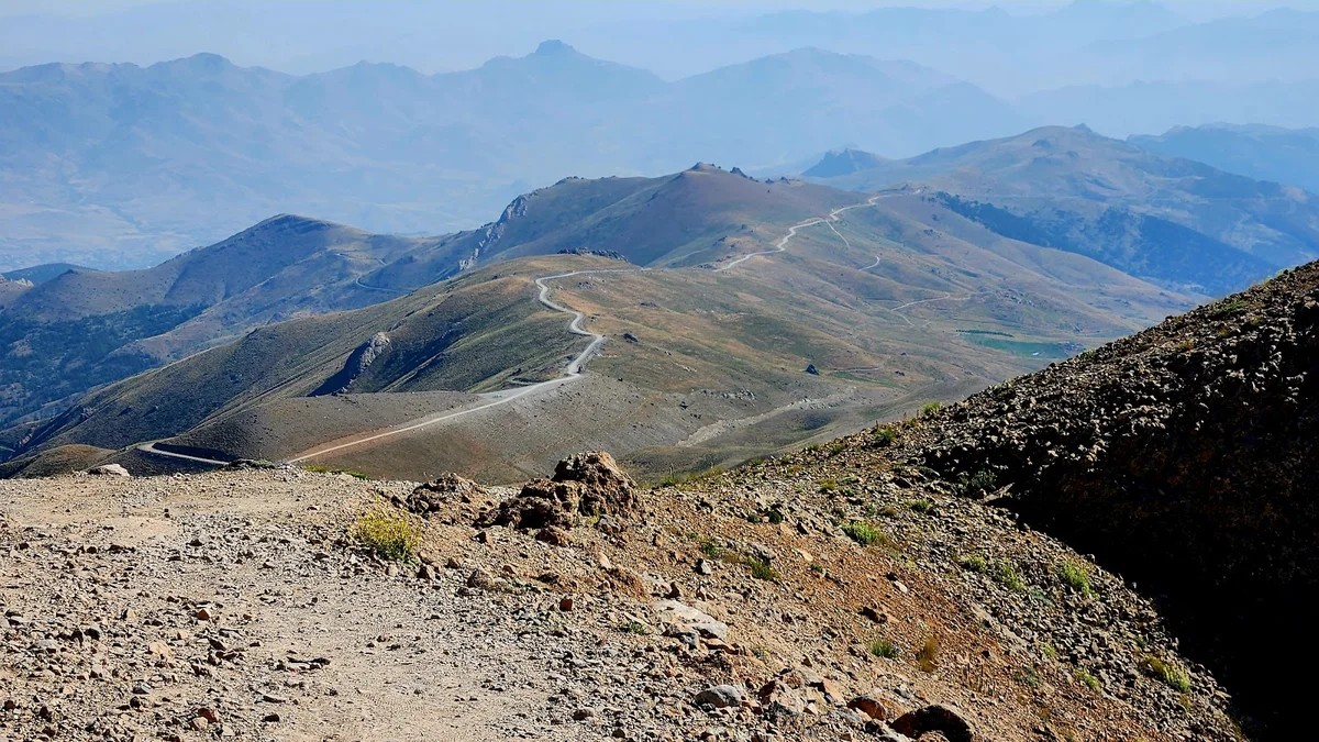 Yolların dalgalı dağlar arasında kaybolduğu bu manzarada, doğanın şekillendirdiği arazi, keşif için ilham veriyor. Dağların kıvrımlı yapısı ve sarı ile kahverengi tonlarının hakim olduğu bitki örtüsü, doğal bir güzellik sunuyor. Kayalık alanlar ve küçük çalılar, manzarayı zenginleştirirken, arka planda belirginleşen dağ siluetleri, doğanın ihtişamını gözler önüne seriyor. Burada, doğanın sunduğu huzur ve ilhamla dolup taşarken, her adımda yeni bir keşif yapmanın heyecanını yaşıyorsunuz.