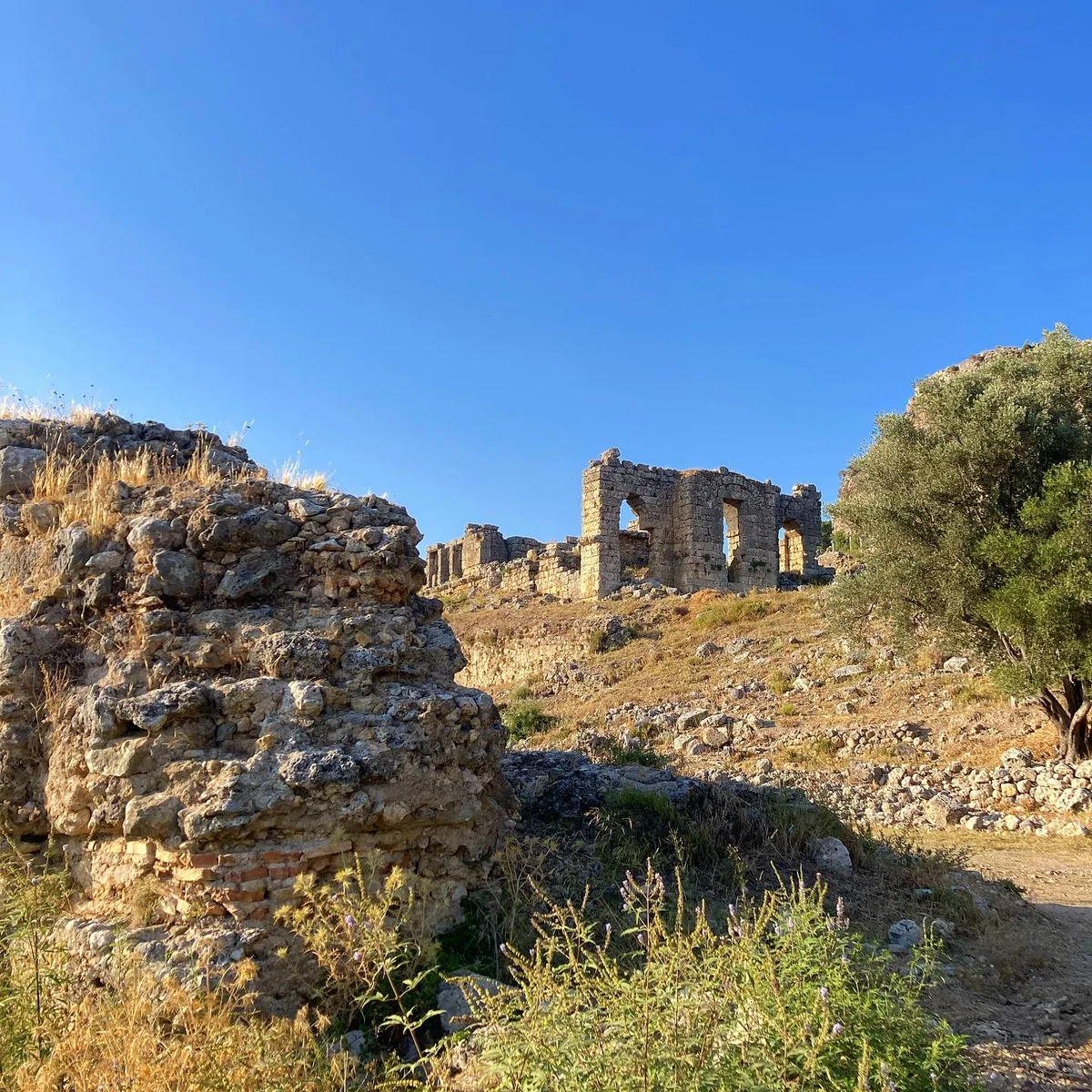 Çatısı yarı yıkılmış eski yapı, Sillyon'un son vedası gibi. Taşlardan oluşmuş zemin ve çevresindeki sade bitki örtüsü, kentin sessiz güzelliğini özetliyor. Side'ye 60 km, Perge'ye 25 km mesafedeki bu eşsiz yer, tarih tutkunlarının kalbinde özel bir yer ediniyor. Tırmanış sonrası Cafe'de çay içmeyi unutma! Sillyon, Konstantinos ve Antonius isimli iki patriğin görev yaptığı, Khalkedon ve Constantinopolis konsüllerinde adı geçen köklü bir piskoposluk merkeziydi. Görüşmek üzere!