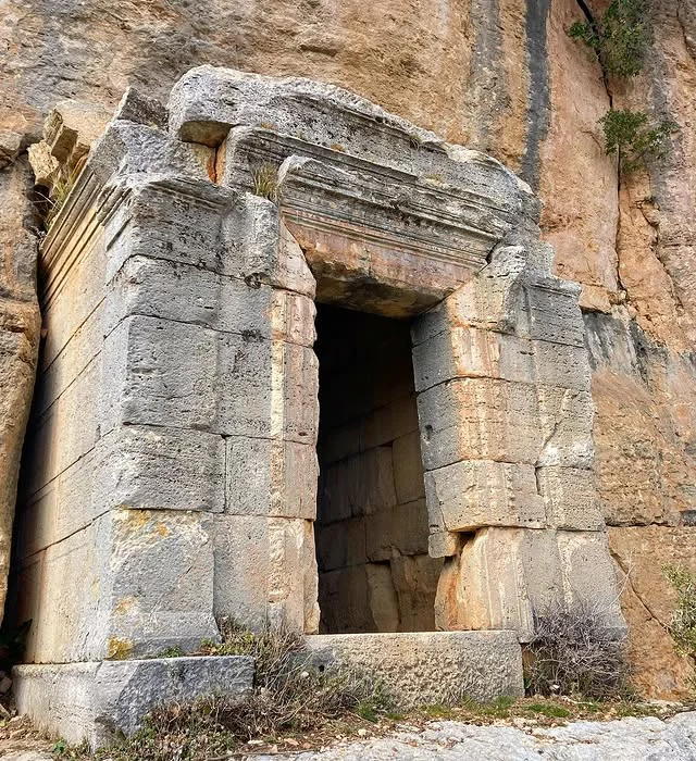 Büyük kayaya oyulmuş bu antik yapı, Kremna'nın özgün mimari tekniklerinden birini sergiliyor. Simetrik tasarımı ve aşınmış taş yüzeyi, binlerce yıllık tarihin izlerini taşıyor. Roma döneminde böyle kaya oyma teknikleri, hem pratik hem de estetik amaçlarla kullanılırdı. Bu yapı, antik ustaların doğal malzemelerle uyumlu çalışma becerisini ortaya koyuyor.