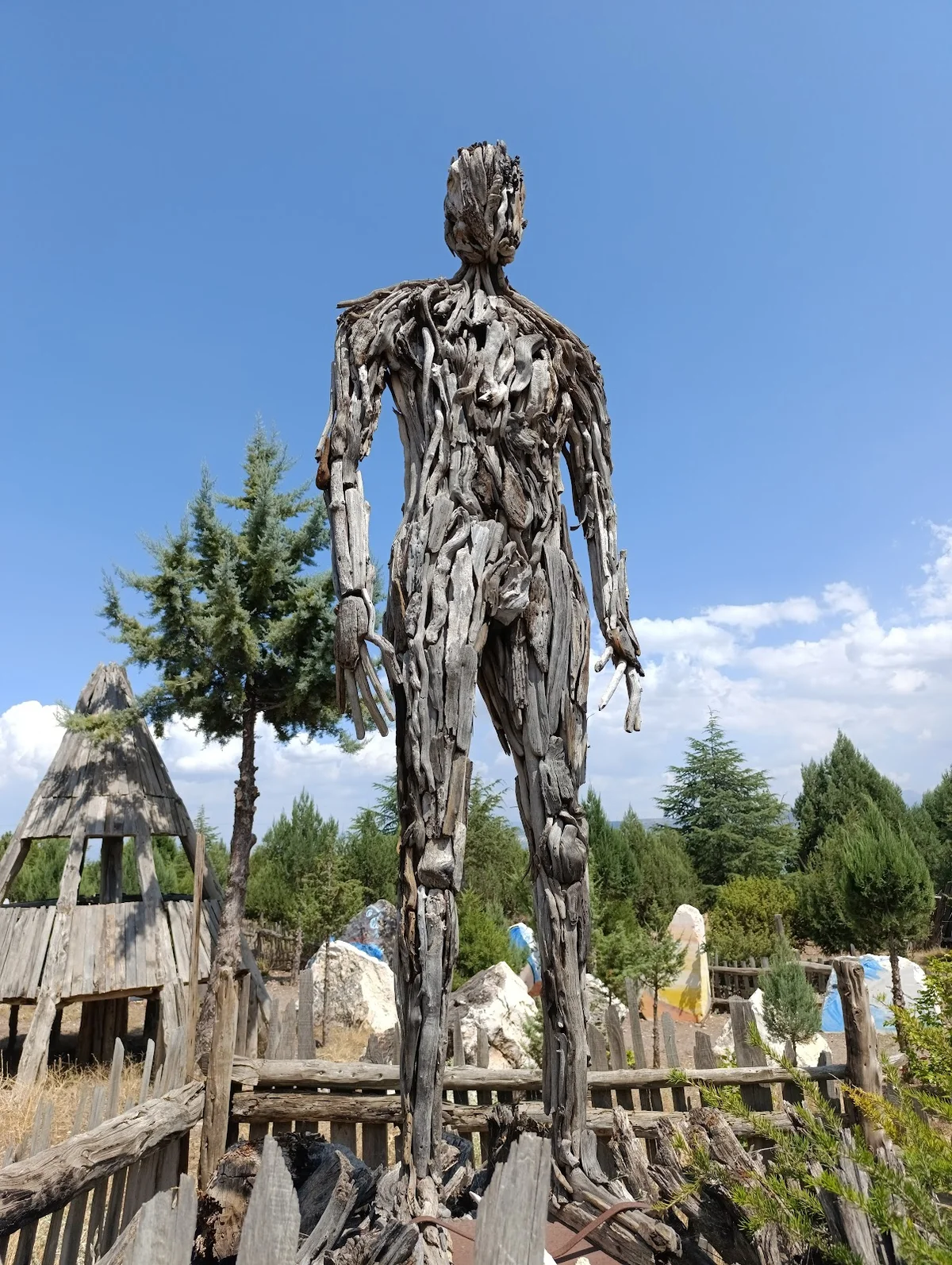 Dal ve ağaç parçalarından oluşturulan insan figürü, doğayla insanın uyumunu simgeliyor. Çam ağaçları arasında yükselen heykel, yerli hayvan ve bitki türlerinin gen muhafazası projesinin sanatsal yansıması. Atık malzemelerin sanat eserine dönüştürülmesi, çevre bilincinin yaratıcı örneği. Bitki, hayvan ve insan hastalıklarında bitkisel tedavi yöntemleri araştırmaları, bu tür sanat çalışmalarıyla destekleniyor. Doğal malzemelerin yeniden değerlendirilmesi, sürdürülebilirlik felsefesinin temel taşı.