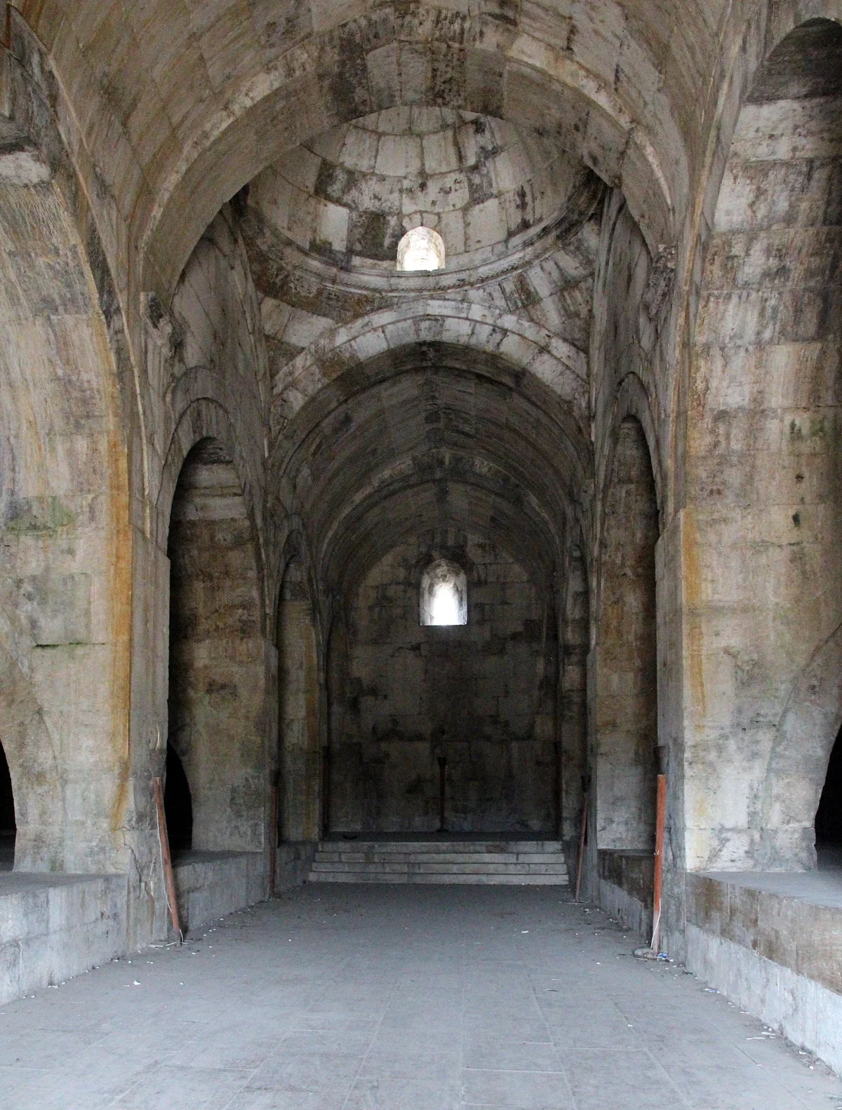 Yüksek kemerler ve geniş alan, hanın iç mekanının büyüklüğünü gösteriyor. Taşlardan inşa edilmiş duvarlar, zamanın izlerini taşıyor. Bu alan, kervan yolcularının dinlendiği, mallarını koruduğu yer. Beş sahınlı planın bir bölümü olan bu mekan, Selçuklu mimarisinin fonksiyonel yaklaşımını yansıtıyor. Her kemer, dönemin mühendislik bilgisinin eseri.