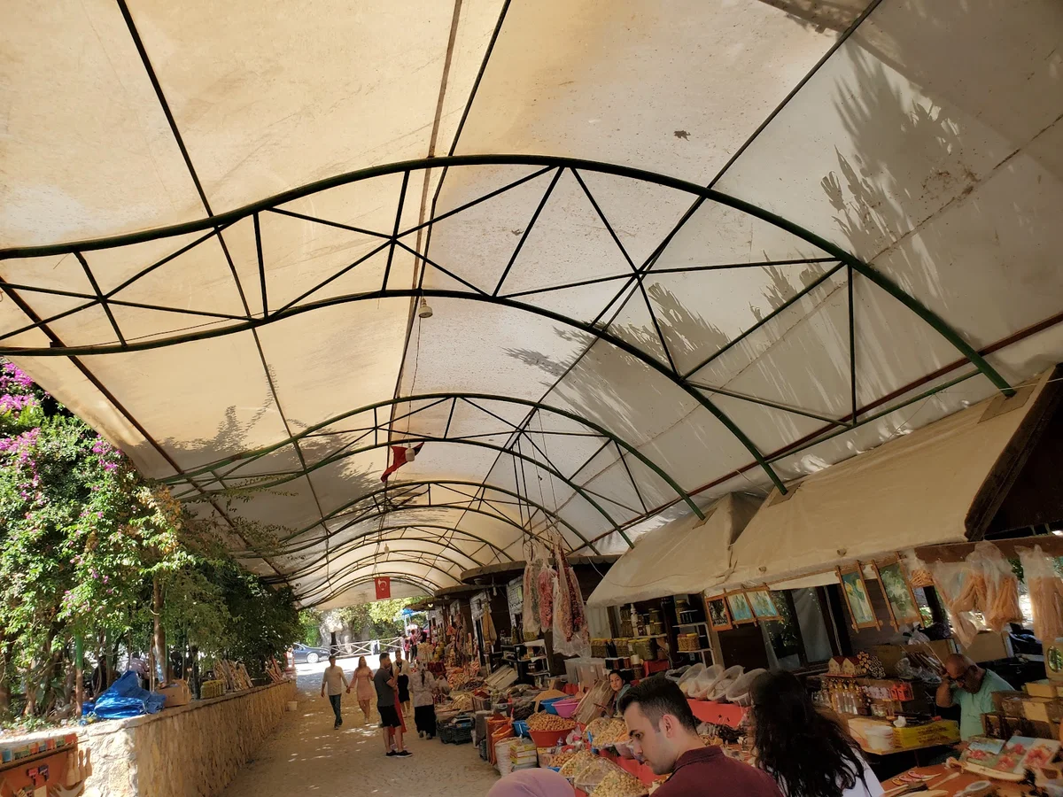Hıdırbey Musa Ağacı, yerel ürünlerin ve hediyelik eşyaların sergilendiği sıcak bir pazar atmosferine sahiptir.