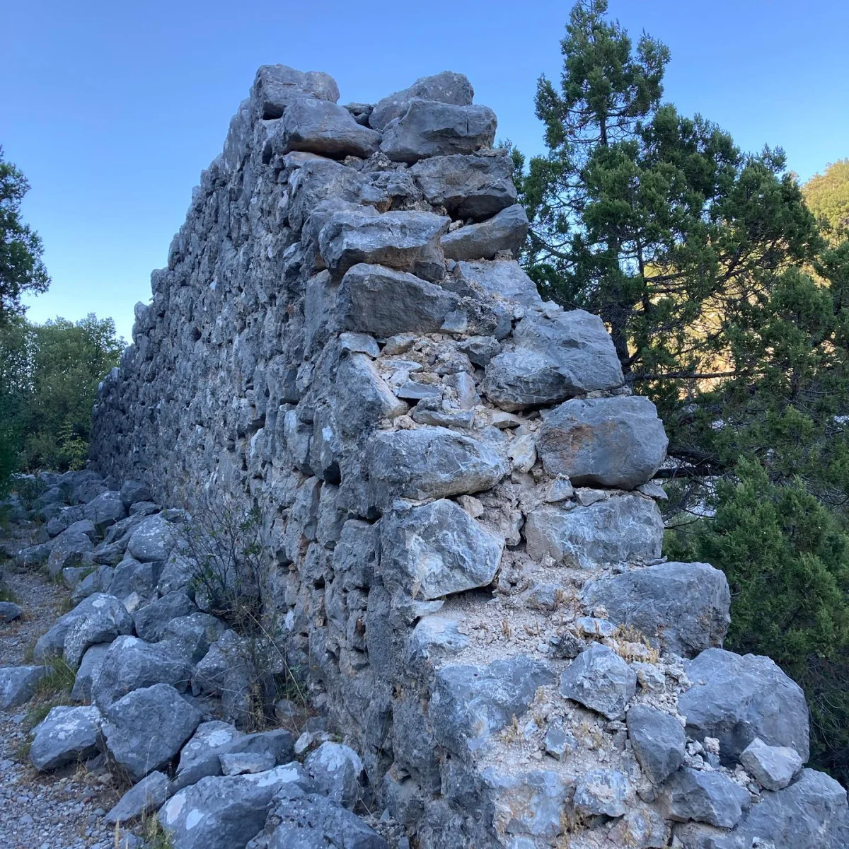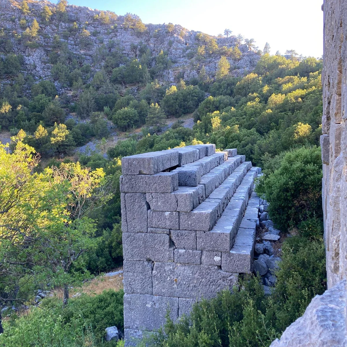 Büyük taş bloklardan oluşan bu yapı, akropole çıkan merdivenli sistemin parçası. Yüksek kayalığın eteklerinde bulunan bu mimari, kentin savunma stratejisini ortaya koyuyor. Geniş alanı kaplayan yapı, Roma döneminin mühendislik başarısını yansıtıyor. J.R.S. Sterrett'in 1884'teki ziyaretinde de bu yapılar dikkatini çekmiş.