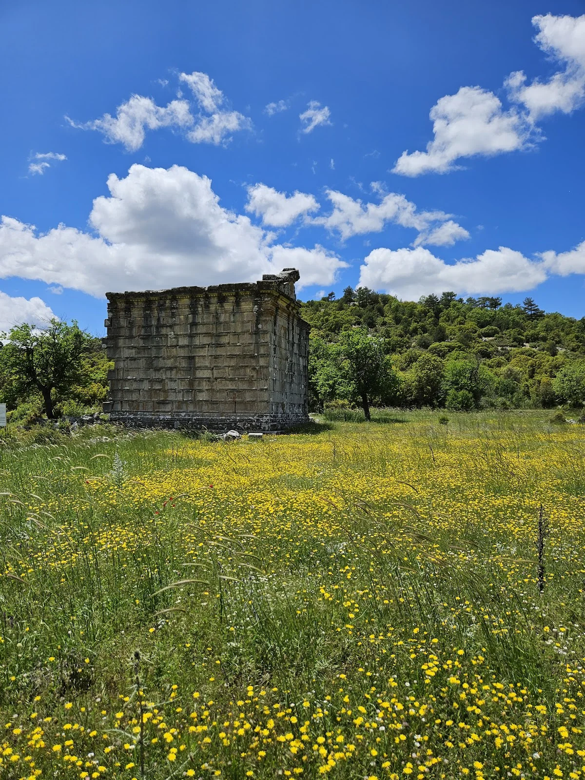 Sarı çiçeklerle dolu otlakta, tarihi yapının kalıntısı sessizce duruyor. Mavi gökyüzü ve beyaz bulutlar altında, binlerce yıllık hikaye sona eriyor. Adada Antik Kenti'nde geçirdiğiniz bu zaman yolculuğu, kalplerinizde unutulmaz izler bıraktı. Sütçüler'in bu eşsiz hazinesi, sizi tekrar bekliyor olacak. Görüşmek üzere!