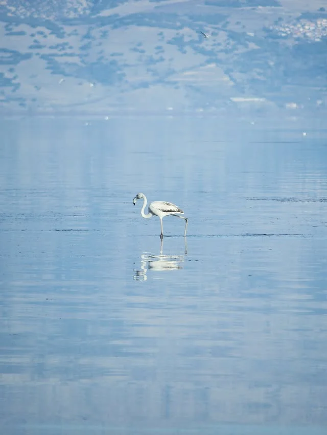 Sakin su yüzeyinde tek başına yürüyen flamingo, gölün nadir kuş türlerine ev sahipliği yaptığını gösteriyor. Zarif yapısıyla suyun mavi tonlarında dans eden bu güzel kuş, doğa fotoğrafçıları için eşsiz fırsatlar sunuyor. Flamingonun varlığı, gölün ekolojik çeşitliliğinin ne kadar zengin olduğunu kanıtlıyor. Su yüzeyindeki yalnız yürüyüş, doğanın sakin ve huzurlu atmosferini yansıtıyor. Bu özel an, gölün kuş cenneti olma özelliğini vurguluyor.