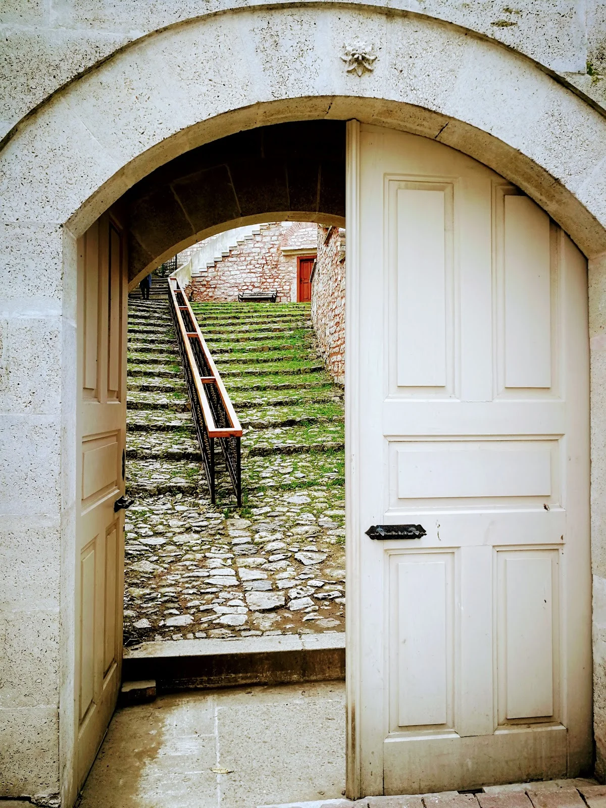 Taşlı merdivenle yukarıya çıkan yol, geçmişe doğru bir yolculuk sunuyor. Sağlam ahşap korkuluk, güvenle estetiği birleştirmiş. Arka planda oluşan doğal atmosfer, huzurun kendisi. Her basamak, yüzyılların bilgeliğini taşıyor. 1924'teki yeniden yapımda kullanılan ahşap elemanlar, eski geleneğe sadık kalmış. Müftü Mahallesi'nde bu merdiven, sadece bir geçit değil, manevi bir yükseliş.