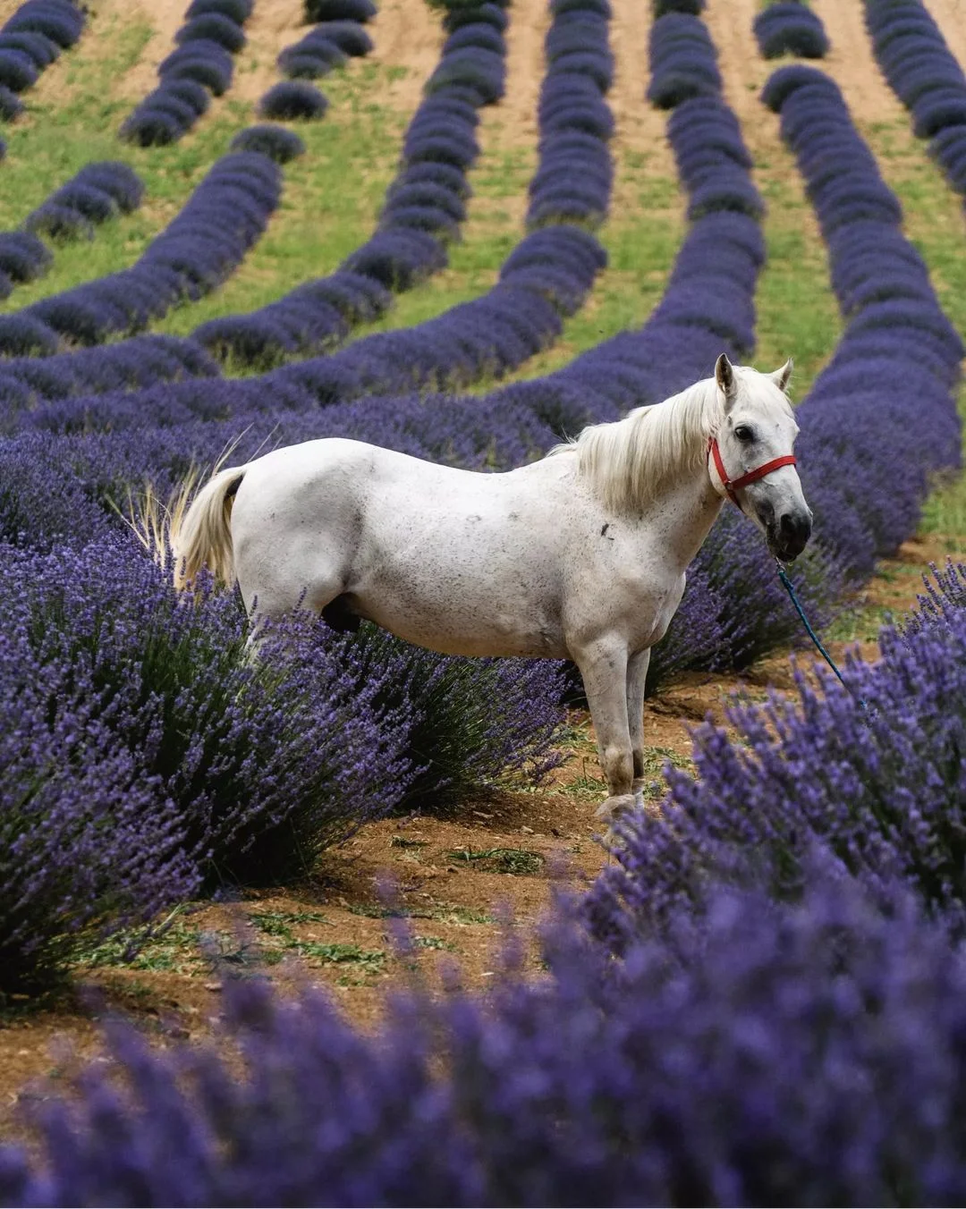 Lavanta tarlaları arasında sakin duruşuyla poz veren beyaz at, Kuyucak'ın pastoral güzelliğini simgeliyor. Bu tür doğal unsurlar, köyün otantik atmosferini koruduğunu gösteriyor. Hayvanlarla iç içe yaşanan bu ortam, şehir hayatından kaçış arayanlar için mükemmel bir terapi sunuyor. Atın huzurlu duruşu, lavantanın verdiği sükunetle birleşerek unutulmaz bir tablo oluşturuyor. Doğayla bu denli uyumlu yaşamın güzel bir örneği.