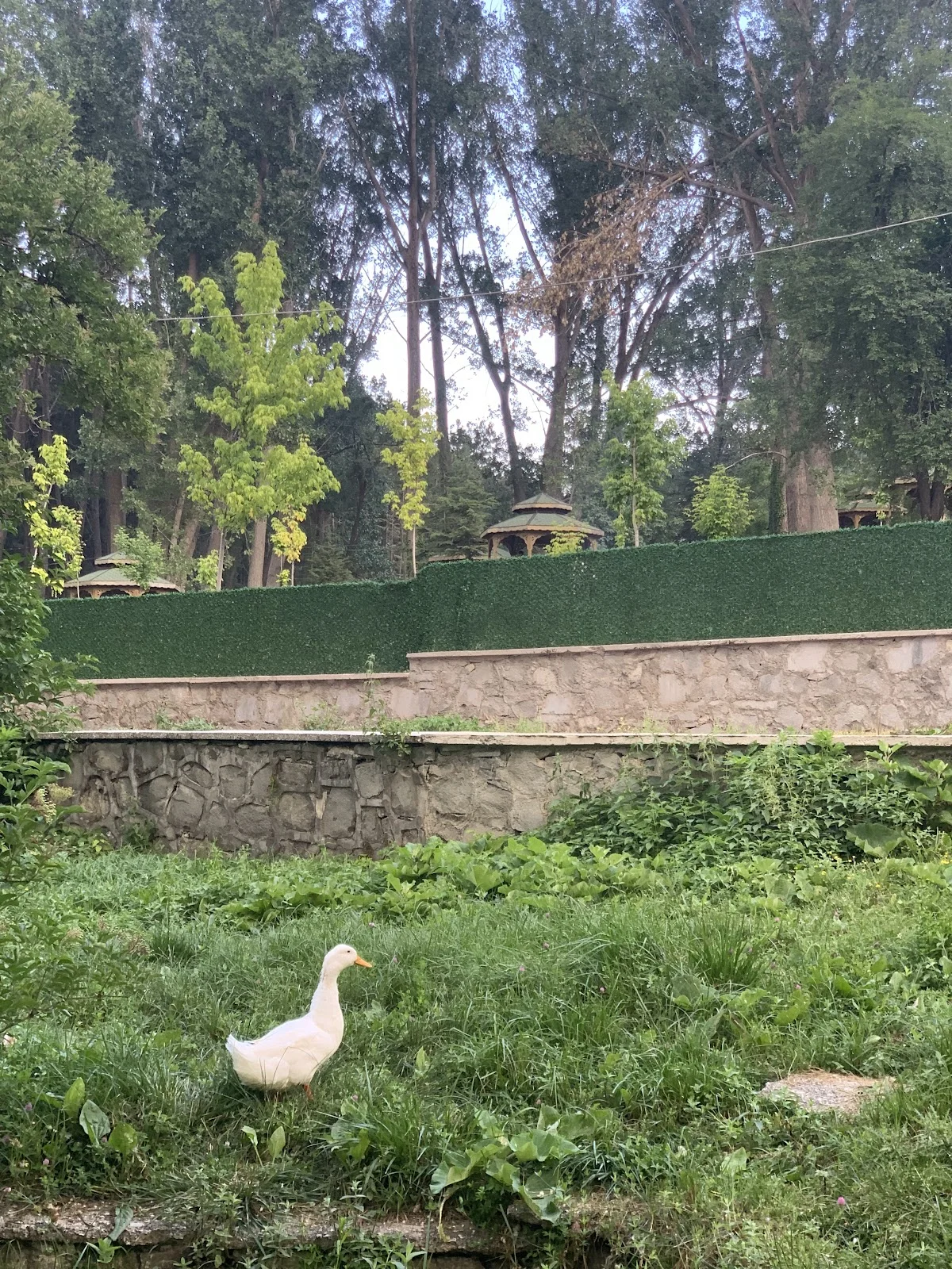 Yeşil çimlerde özgürce dolaşan beyaz ördekler, alanın canlı sakinleri. Arka plandaki çardaklar arasında gezinirken, bu sevimli dostlarla karşılaşabilirsin. Çocuklar onları izlemekten büyük keyif alıyor, fotoğraf çekmek isteyenler için harika modeller. Yüksek ağaçların gölgesinde, bitki örtüsünün arasında yaşayan bu canlılar, ekosistemin sağlıklı olduğunun göstergesi. Doğal yaşamın bu kadar yakınında olmak, gerçekten özel bir duygu.