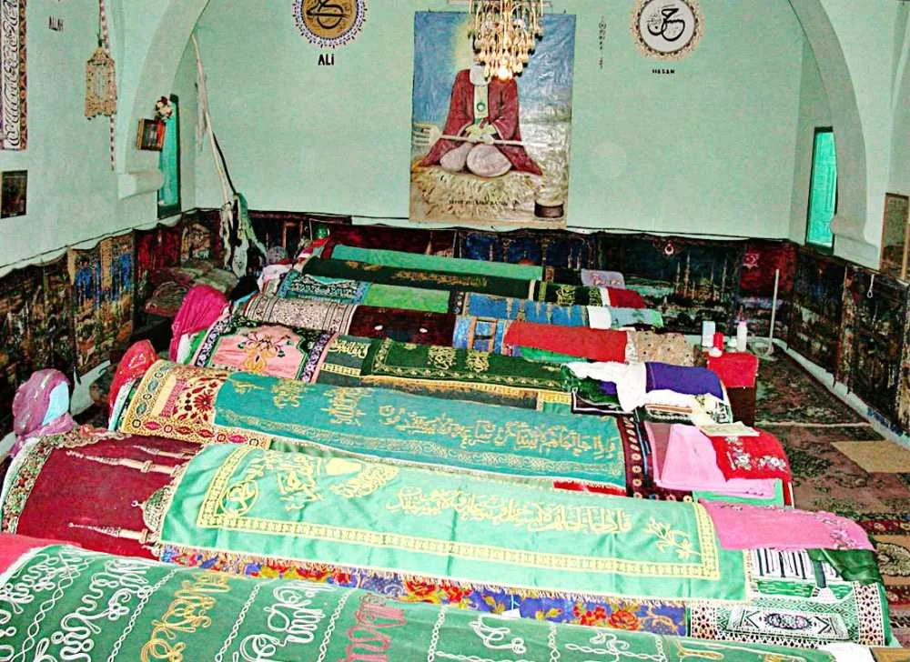 Renkli örtülerle kaplı sandukalar, Veli Baba ve ailesinin huzur bulduğu yer. Duvarlardaki dini motifler ve yazılar, Osmanlı hat sanatının güzel örnekleri. Her sanduka, bir ömrün hikayesini anlatıyor. 16. yüzyılda doğan, kerametleriyle tanınan Veli Baba, burada ebedi uykusunda. Yeşil, kırmızı, sarı örtüler, ziyaretçilerin saygısının göstergesi. Duvarlar, asırlık duaları içinde saklıyor. Sessizlik, burada en güzel dil oluyor.