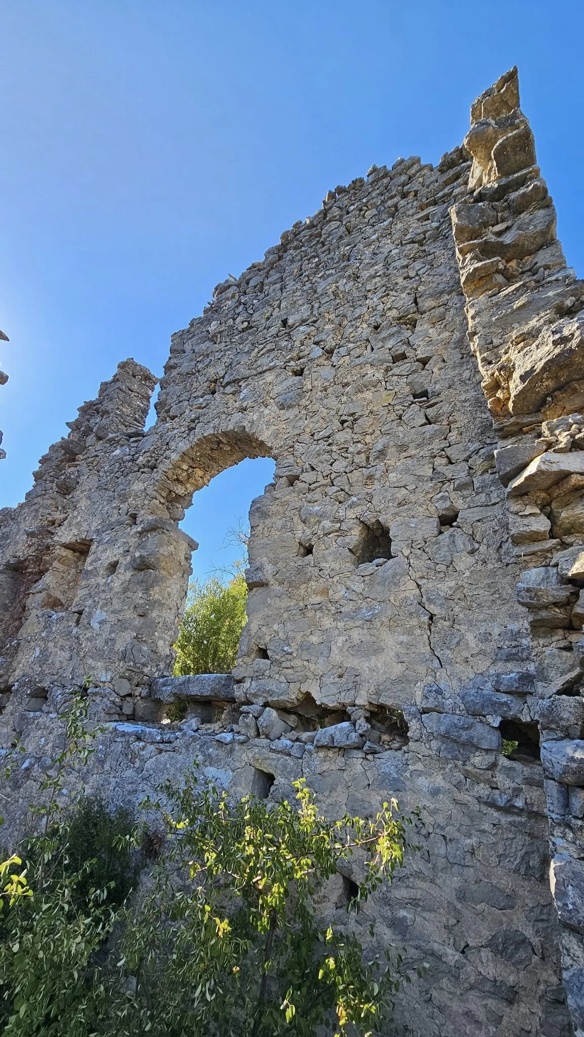 Doğal ortamda yer alan tarihi kalıntılar, açık mavi gökyüzü ve çevredeki dağlarla muhteşem bir kompozisyon oluşturuyor. Yeşil alanlar arasında uzanan taşlardan yapılmış yapı parçaları, bölgenin çok katmanlı tarihine ışık tutuyor. Erken Bizans mimarisinin önemli örneklerinden olan bu kalıntılar, günümüze kadar ulaşarak sürekliliğini korumuş. Tarih ve doğa severler için cazip destinasyon özelliği taşıyan bu alan, unutulmaz deneyimler vaat ediyor.